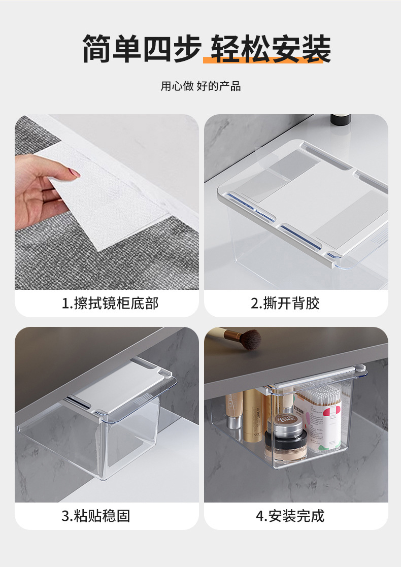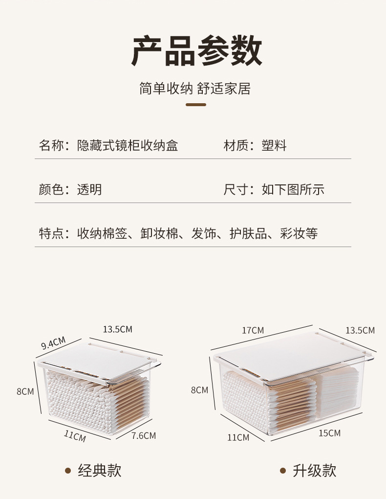 화장실 거울 캐비닛 서랍 형 저장 상자 가정용 면봉 화장품 면화 저장 투명 풀아웃 저장 랙스토어 가기