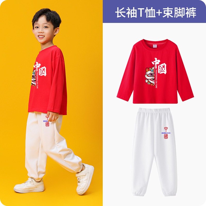 국경일 어린이 공연 의상 중국 스타일 사자춤 초등학생 치어리딩 의상 소녀 소년 빨간색 정장스토어 가기