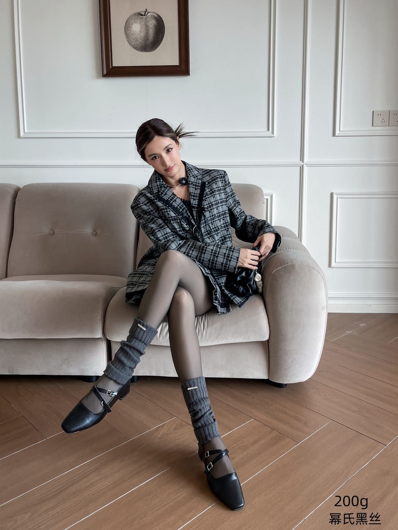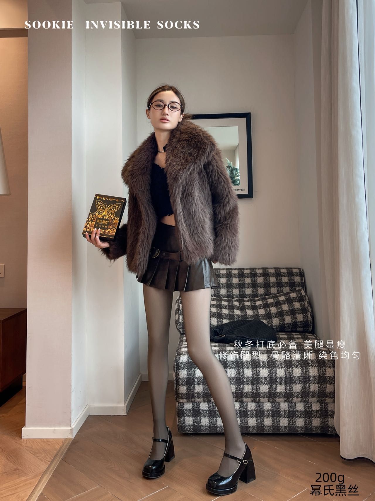 파워 블랙 실크 300g 워터 라이트 블랙 실크 가을과 겨울 높은 탄성 다리 형성 검은 피부 기모 따뜻한 레깅스 양말