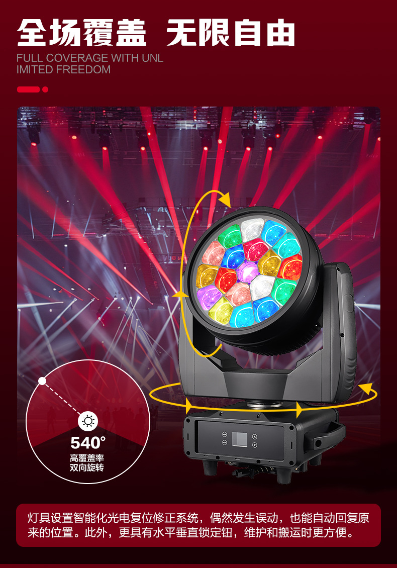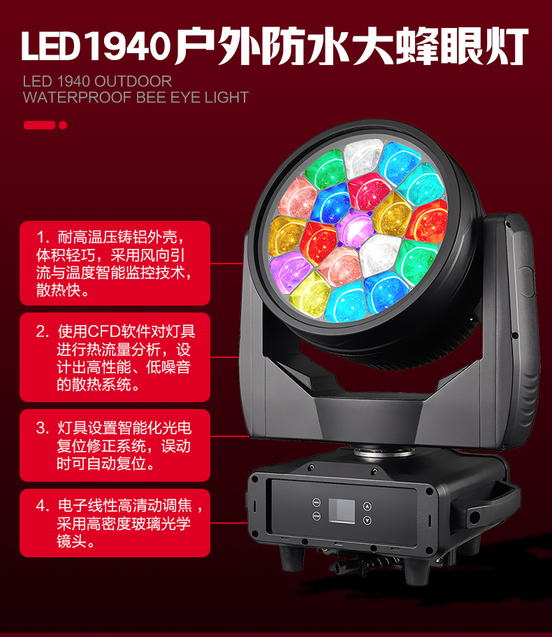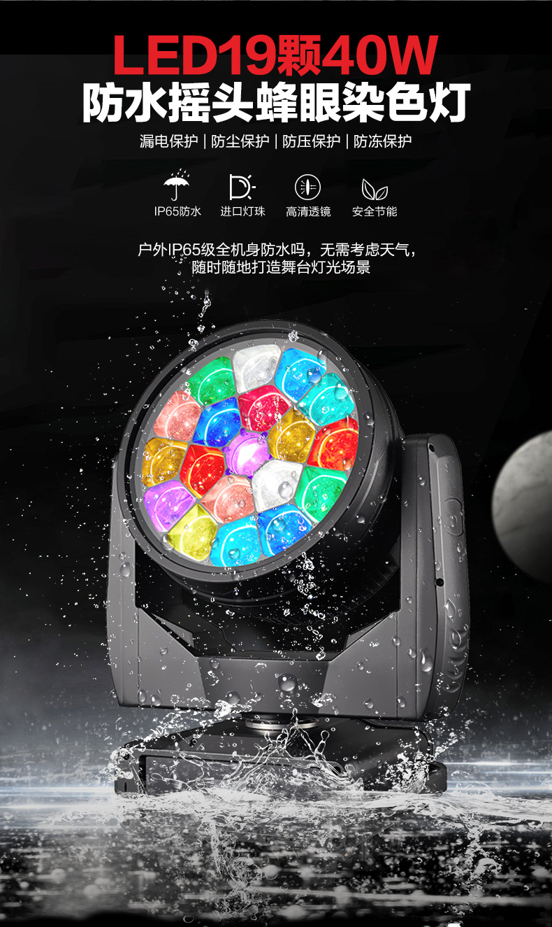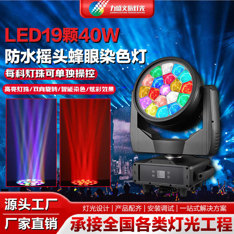 맞춤형 LED 방수 대형 벌집형 조명 19개 40W 램프 비즈 염색 조명 음악 축제 무빙 헤드 라이트 파 라이트 라이트 쇼