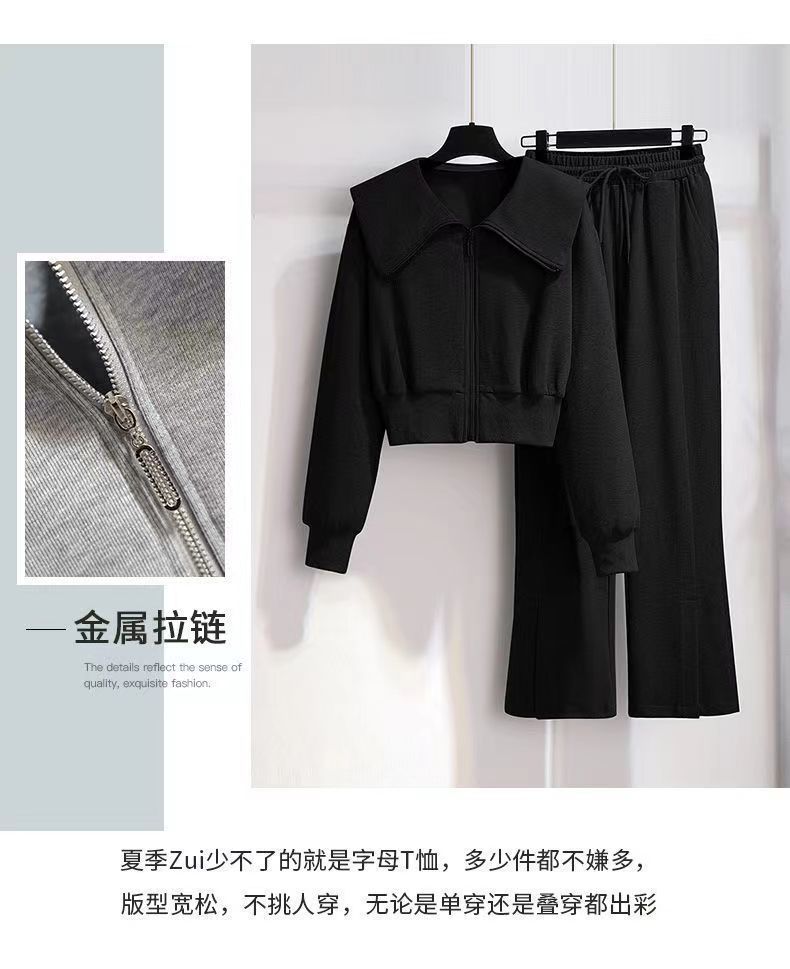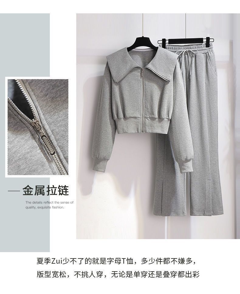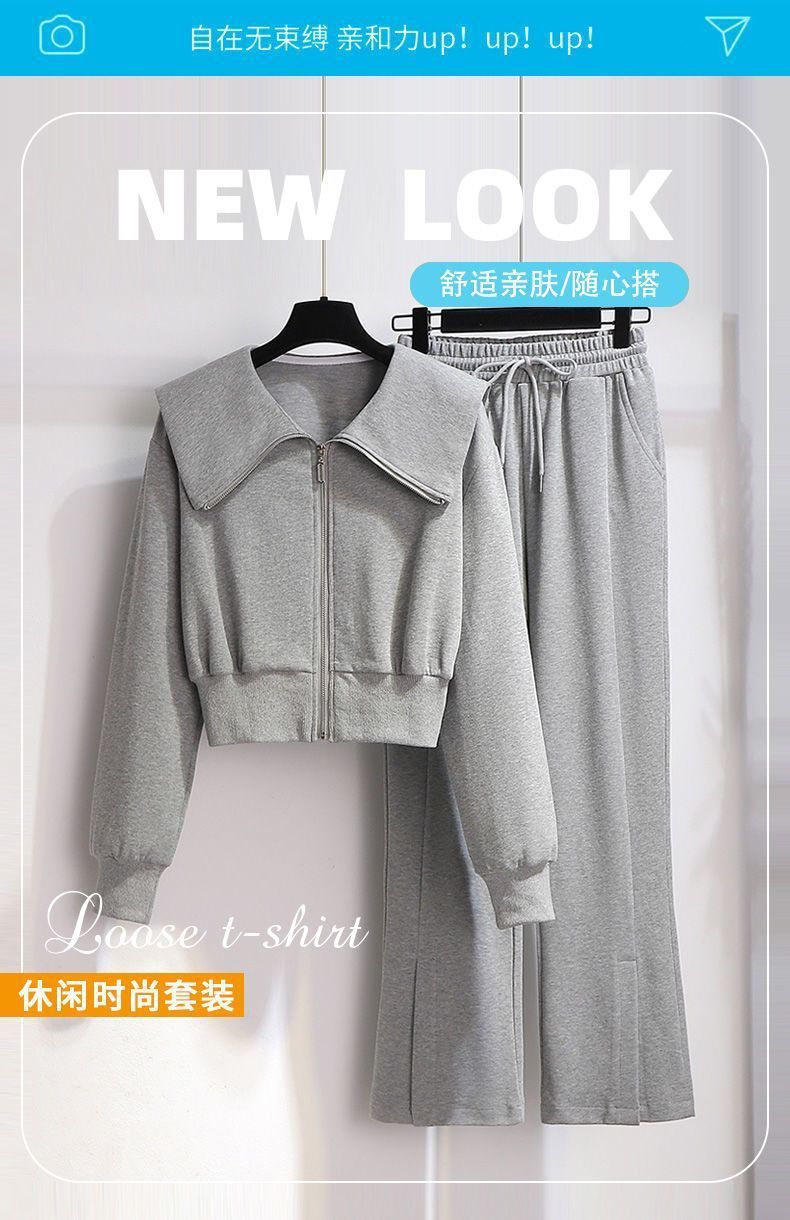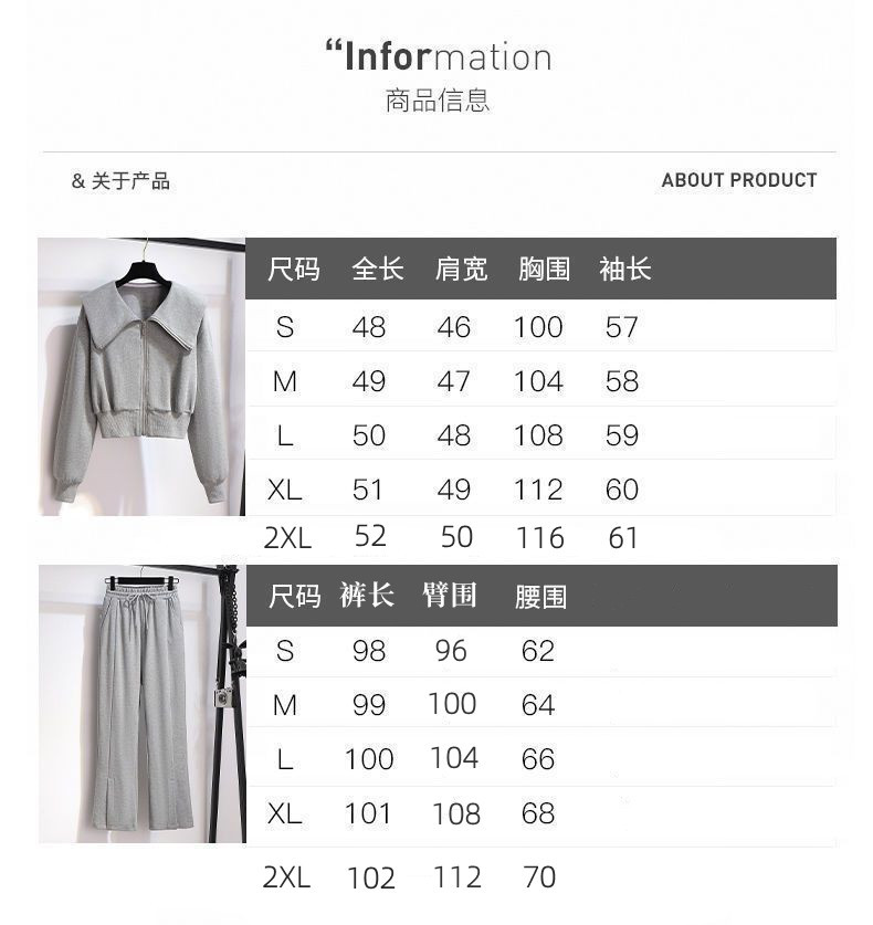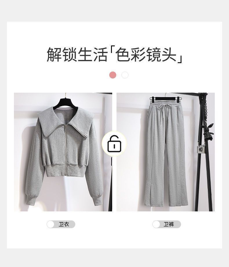 외국 무역 패션 캐주얼 스웨터 스포츠 세트 여성 2024 새로운 가을과 겨울 짧은 코트 넓은 다리 바지 투피스 패션스토어 가기