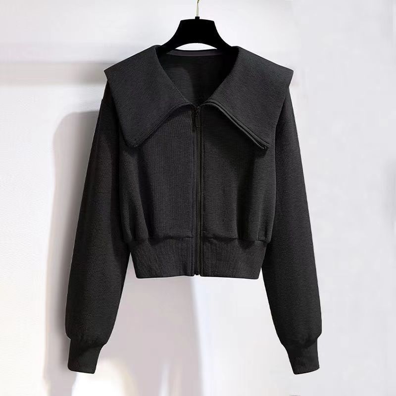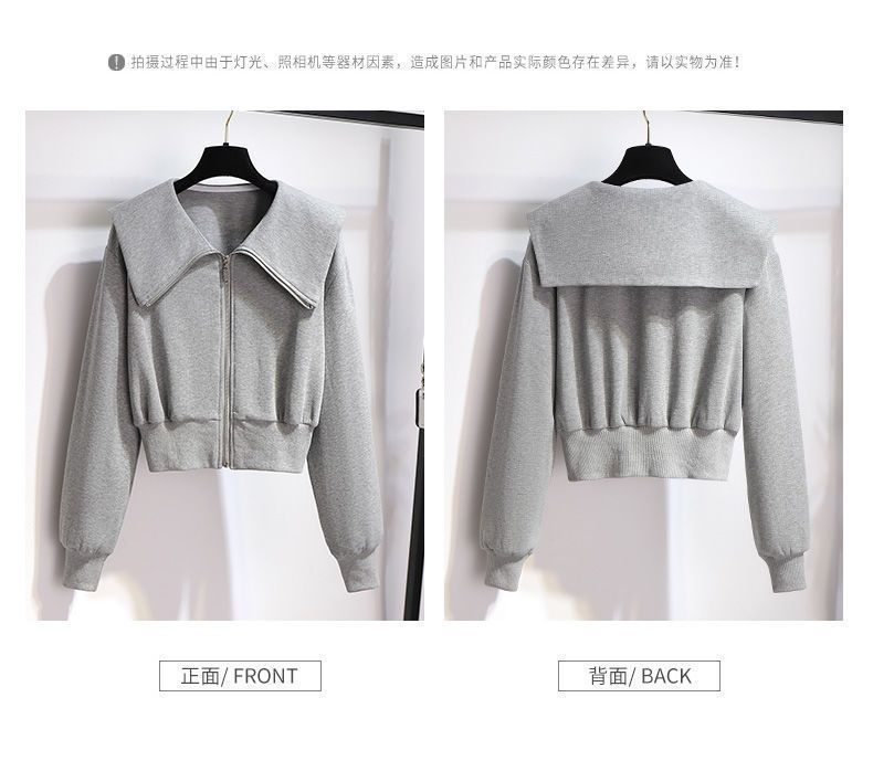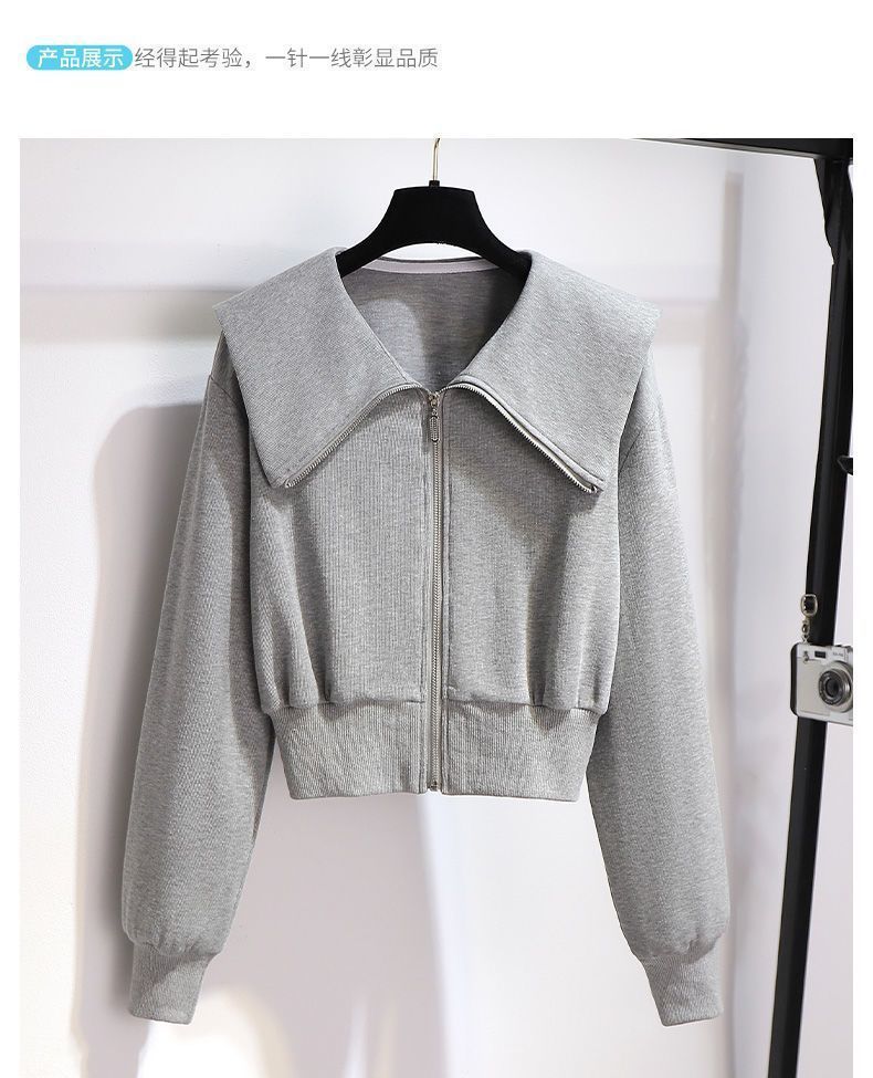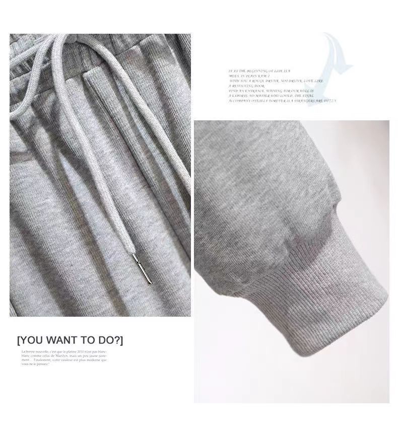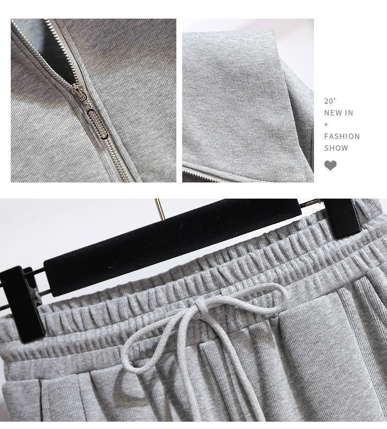 외국 무역 패션 캐주얼 스웨터 스포츠 세트 여성 2024 새로운 가을과 겨울 짧은 코트 넓은 다리 바지 투피스 패션스토어 가기