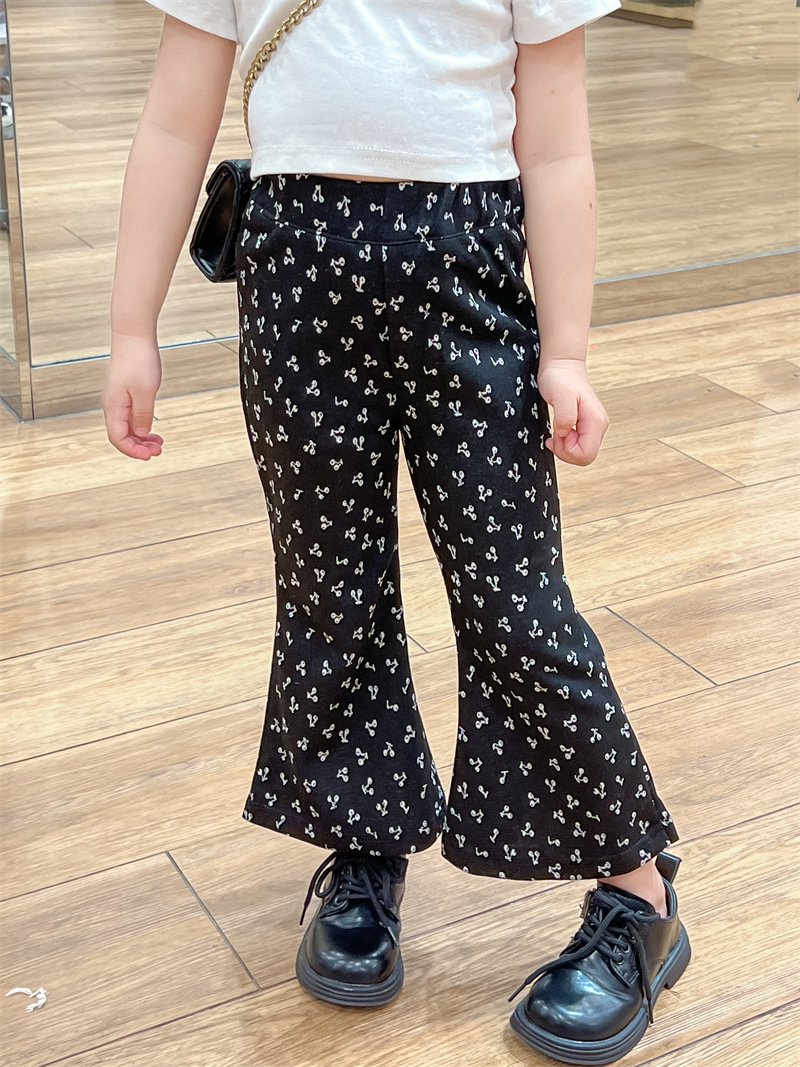 가을 2024 새로운 한국 스타일 아동복 소녀 영국 스타일 니트 카디건 재킷 체리 자카드 플래 바지스토어 가기
