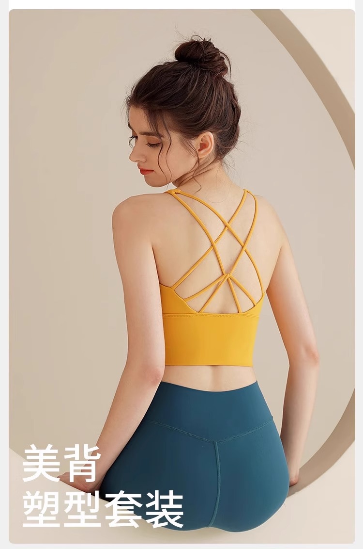 스포츠 피트니스 의류 여성 여름 새로운 탑 크로스 아름다운 백 브라 충격 방지 및 처짐 방지 전문 필라테스 조끼