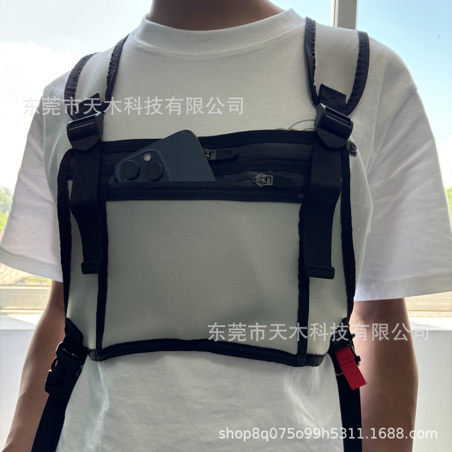 Ins 유행 브랜드 남성 조끼 가방 야외 스포츠 후원자 가슴 가방 조정 가능한 피트니스 방수 휴대 전화 가방 등산