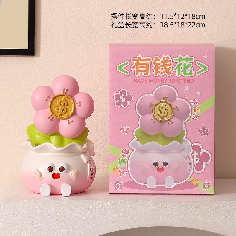 新款创意有钱花桌面摆件办公桌面治愈解压装饰树脂工艺小摆件批发