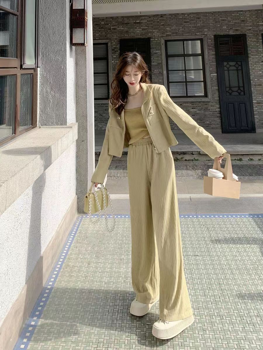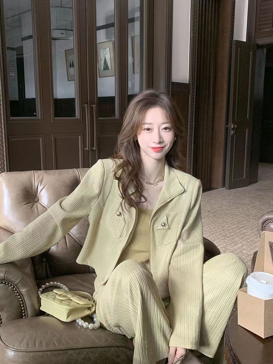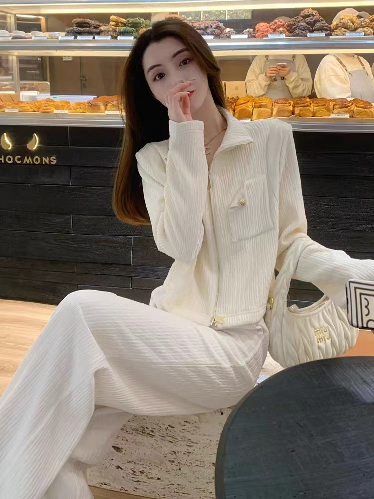 가벼운 럭셔리 우아한 향기로운 스타일 세트 여성의 2024 년 초가을 뉴 에이지-여성을위한 서양식 슬리밍 유행 하이 엔드 투피스 세트
