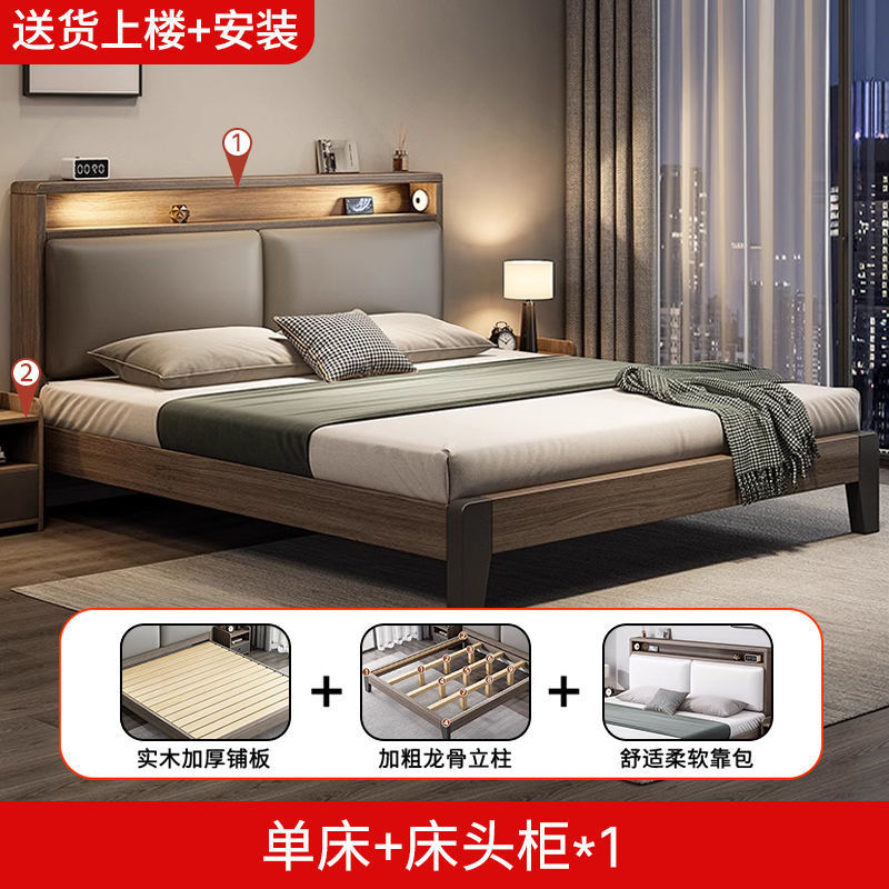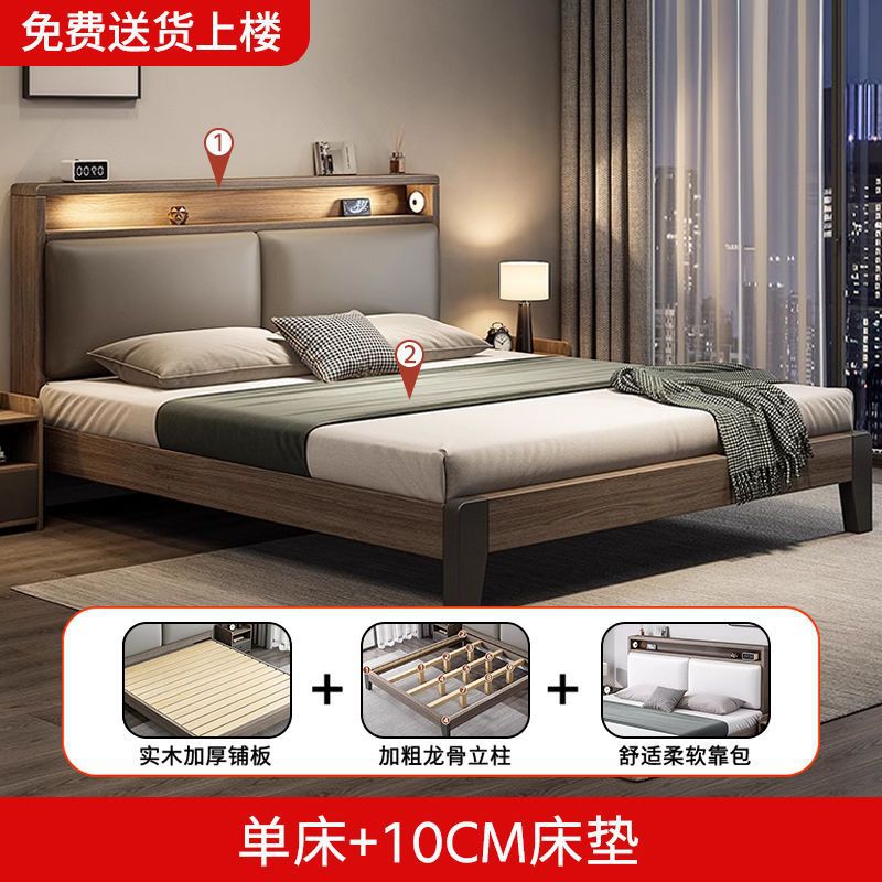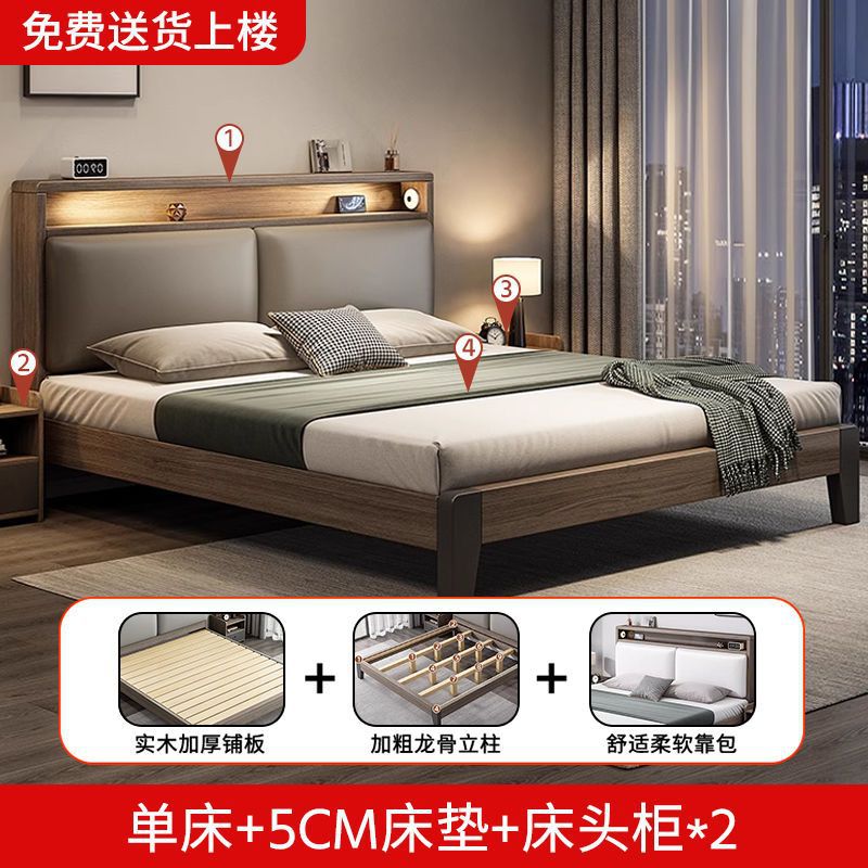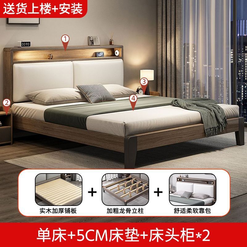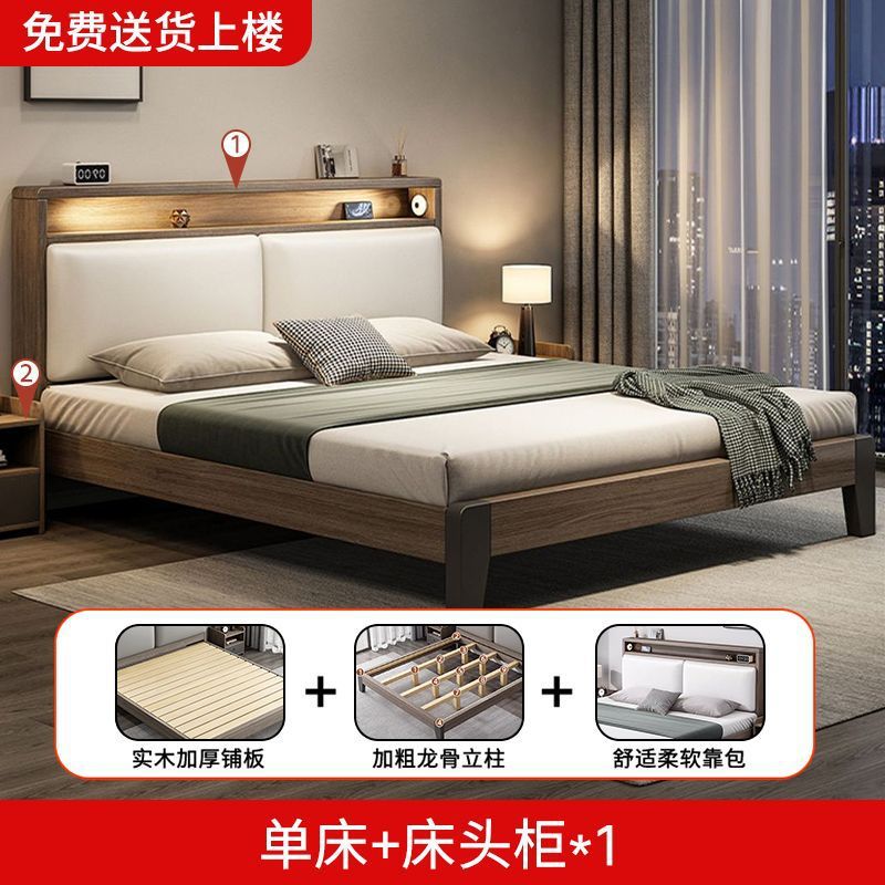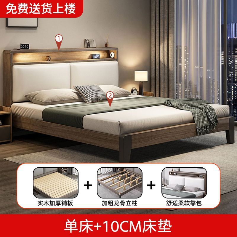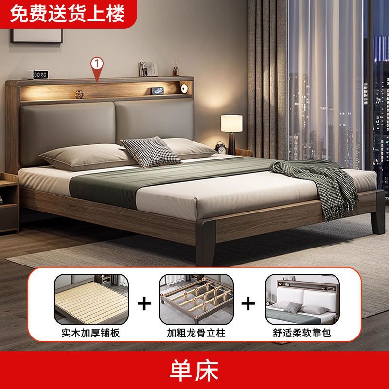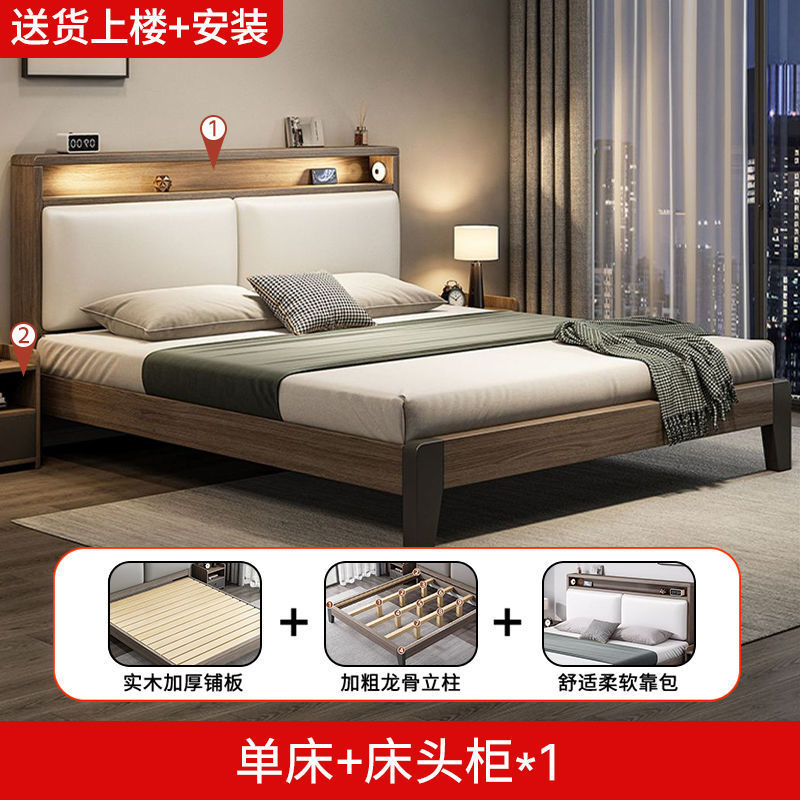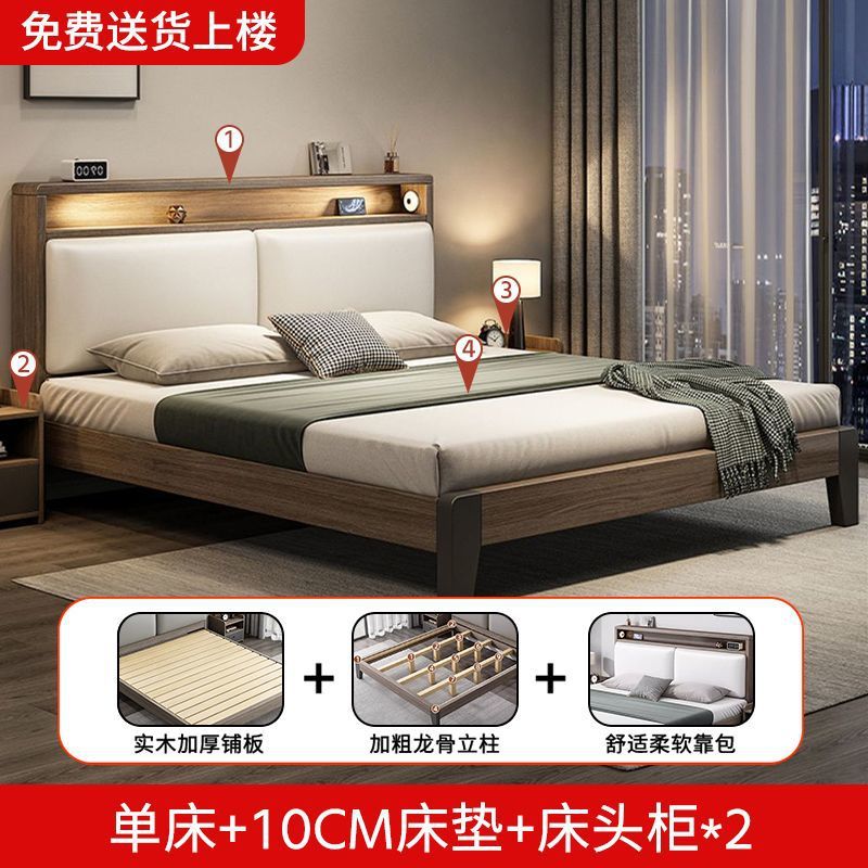 침대 단단한 나무 침대 더블 1.8x2m 마스터 침실 퀸 침대 홈 1.5 m 작은 아파트 임대 방 1.2m 싱글 침대스토어 가기