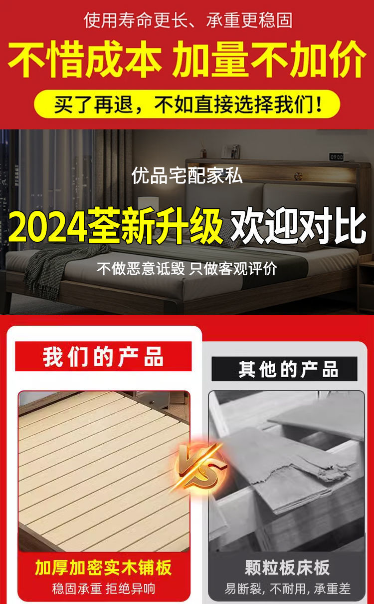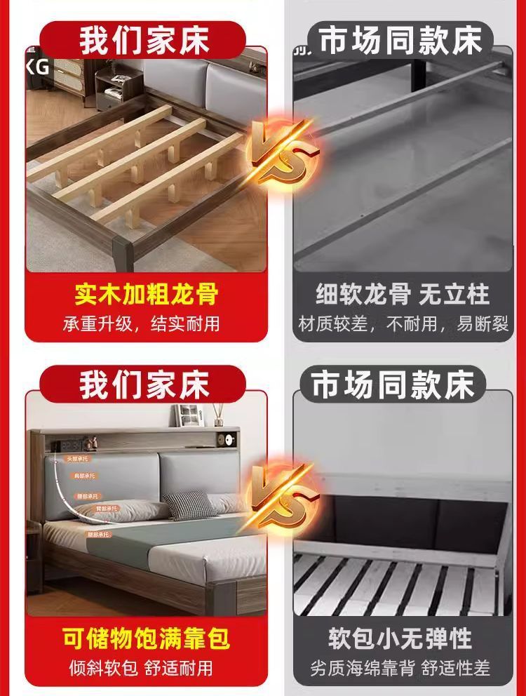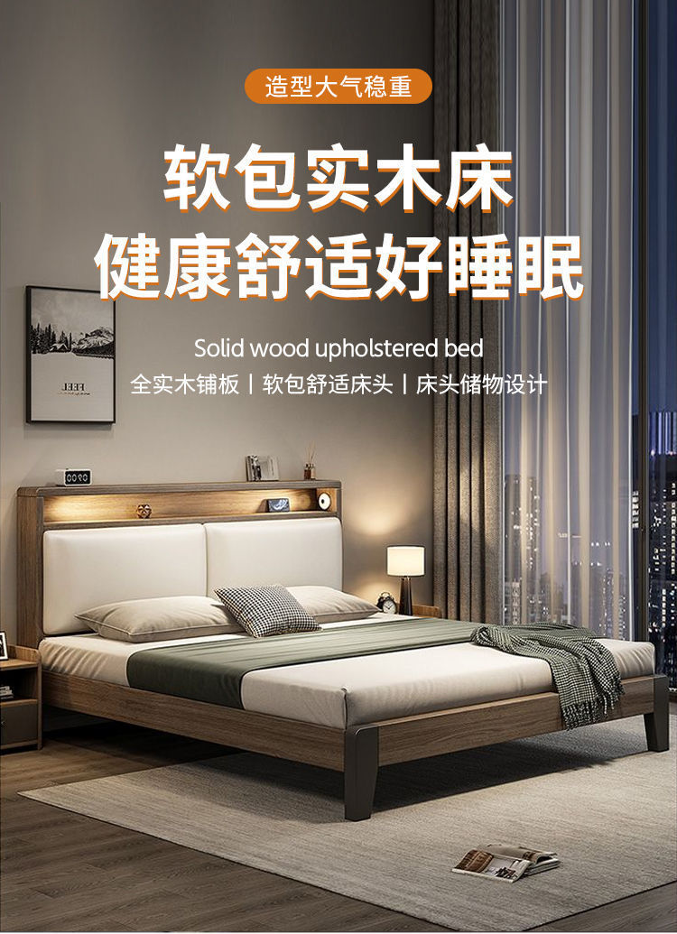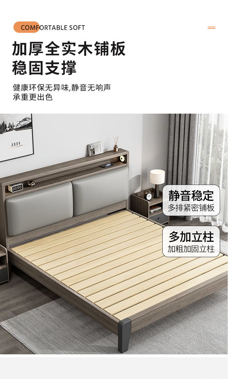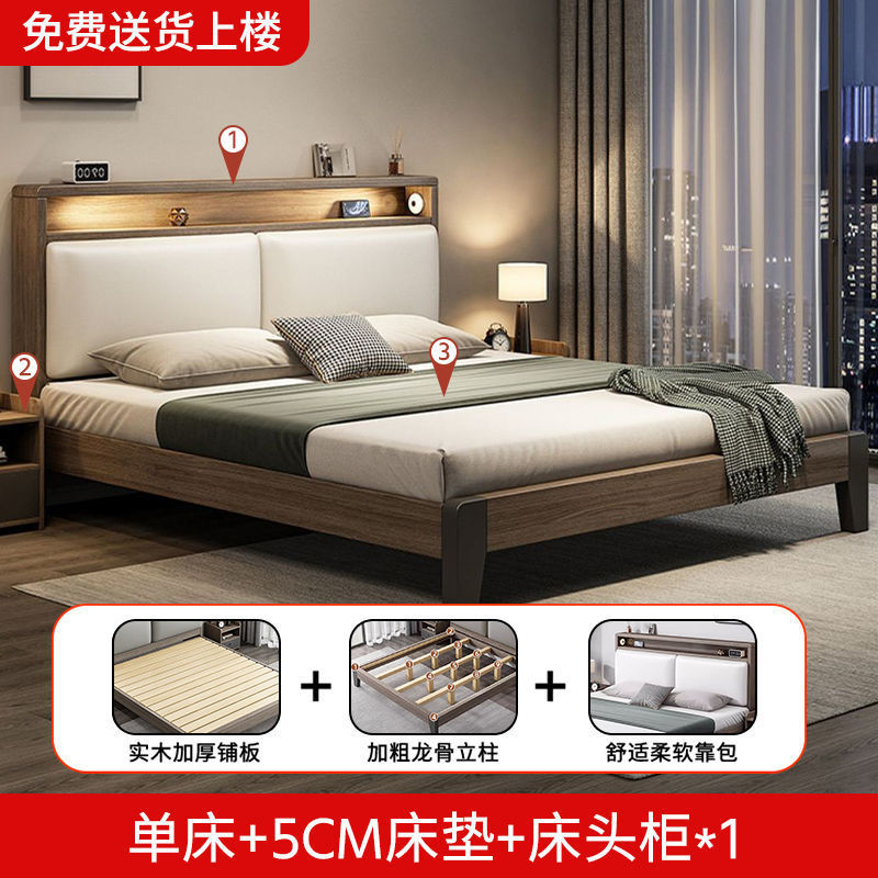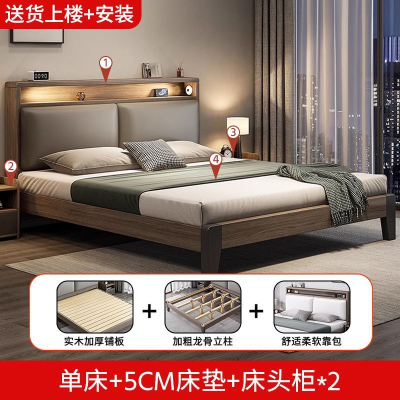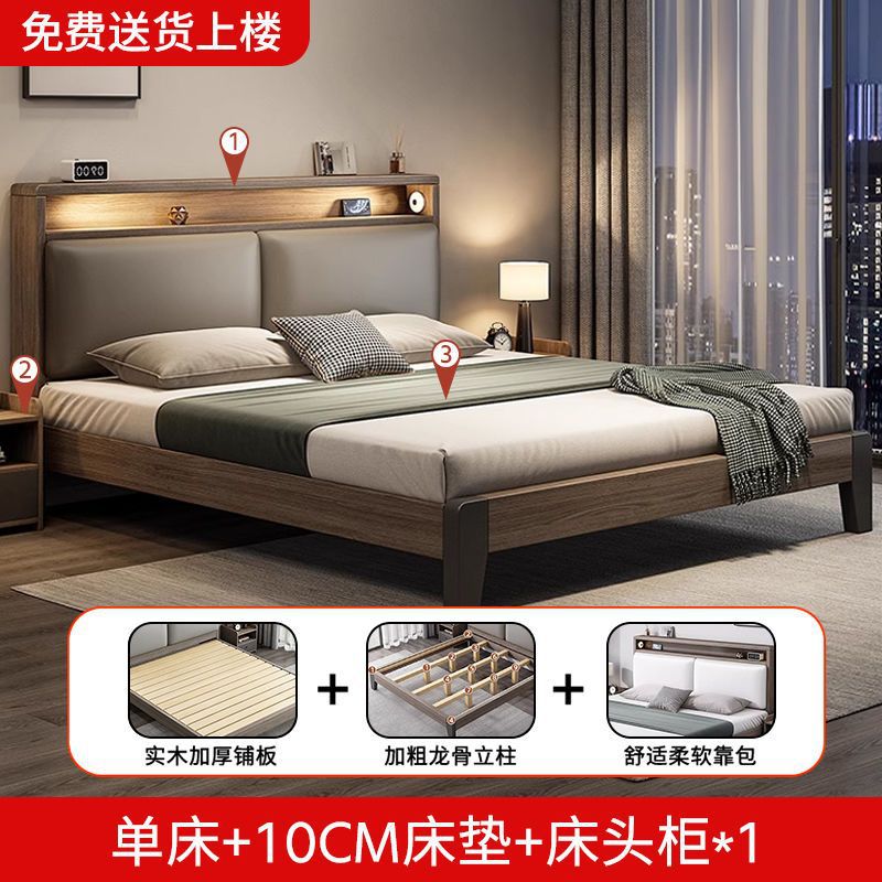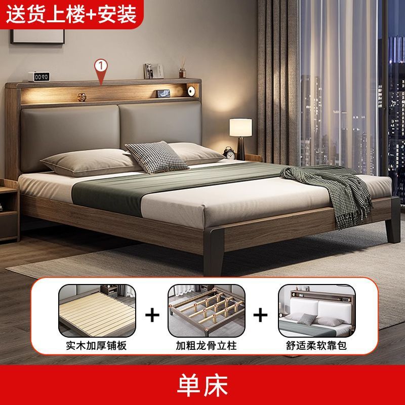 침대 단단한 나무 침대 더블 1.8x2m 마스터 침실 퀸 침대 홈 1.5 m 작은 아파트 임대 방 1.2m 싱글 침대스토어 가기