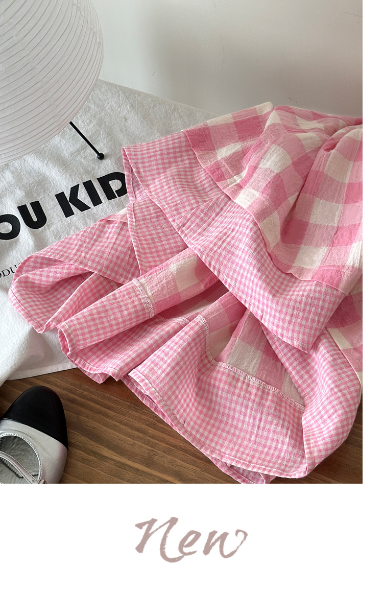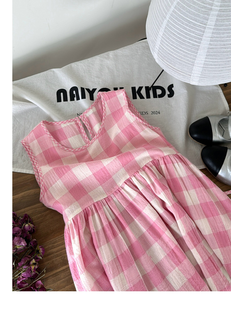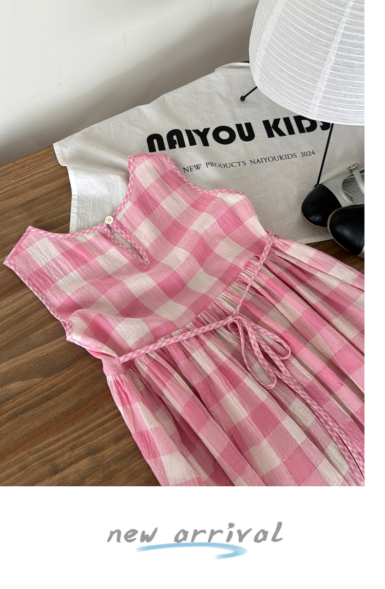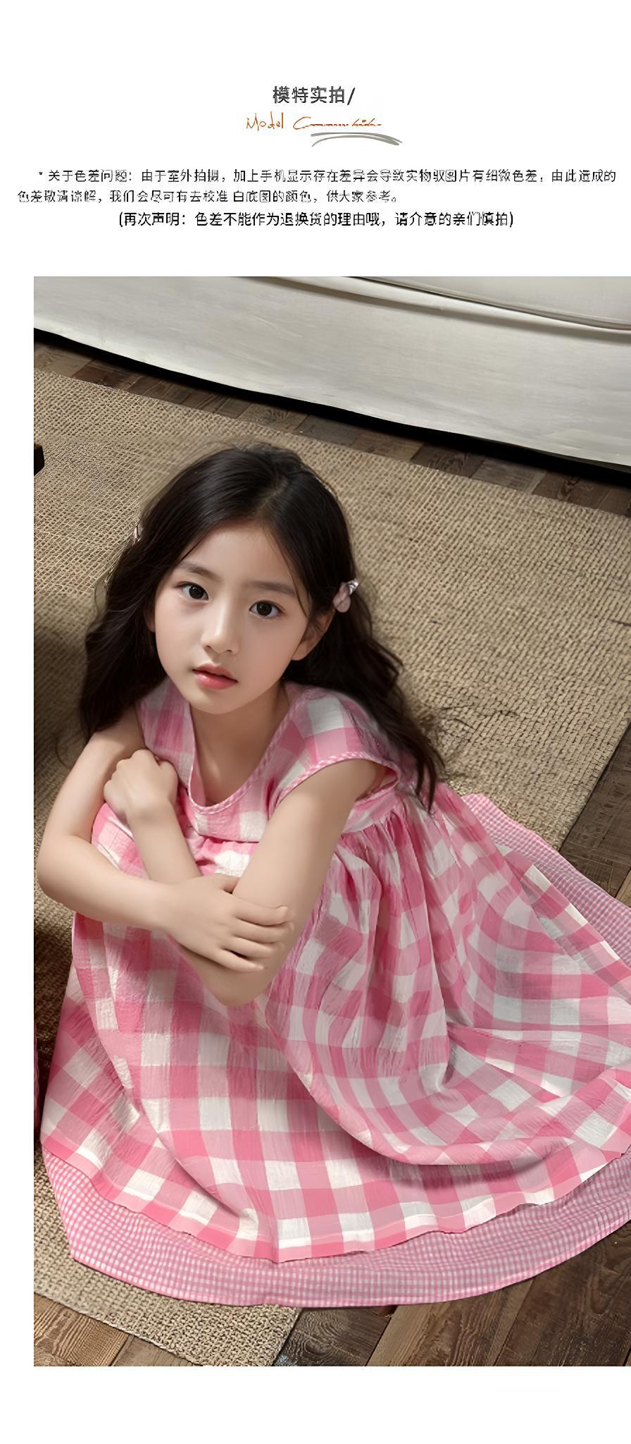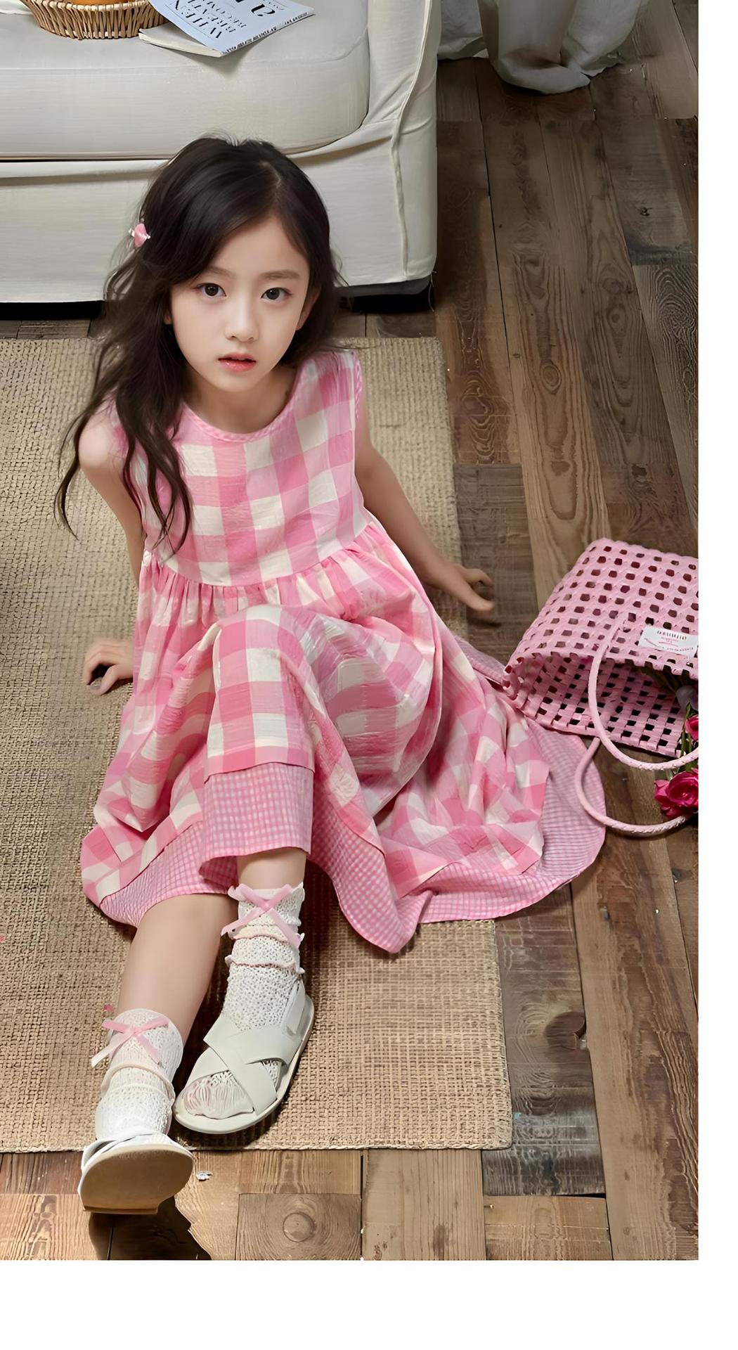격자 무늬 긴 원피스 소녀 원피스 핑크 여름 해변 어린이 치마 민소매 면 소녀 공주 치마스토어 가기