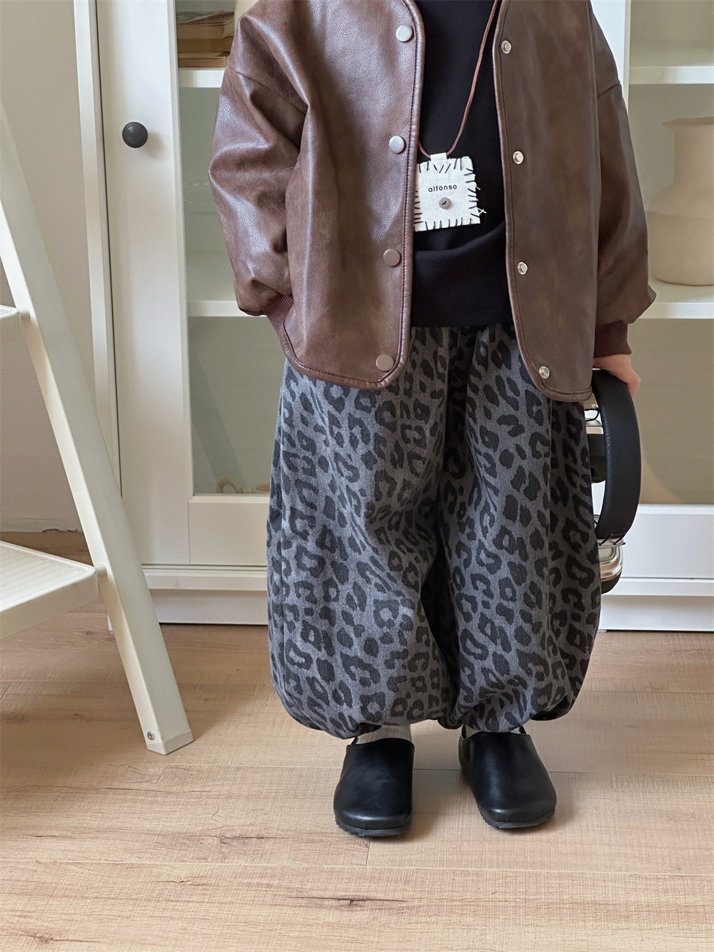 몽타니 아동 바지 어린이 2025 봄 가을 남아용 신상 레오파드 프린트 신축성 데님 팬츠 남녀 아기용 한국 스타일 랜턴 팬츠스토어 가기