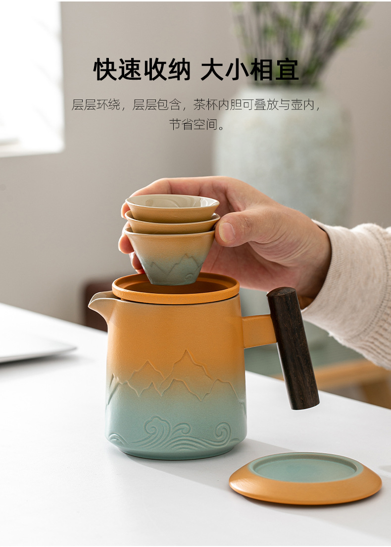 휴대용 여행 차 세트 작은 세트 간단한 주전자 차 컵 야외 여행 호텔 기숙사 캠핑 익스프레스 컵