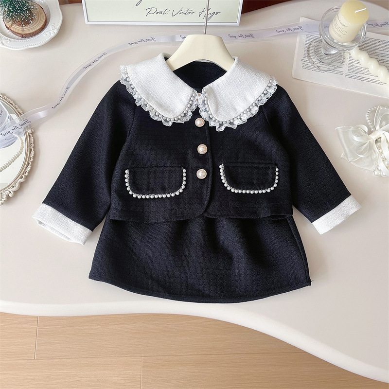 가을 2024 새로운 스타일 소녀의 옷깃 레이스 샤넬 스타일 귀여운 치마 세트 여성의 보물 한국 투피스 세트스토어 가기