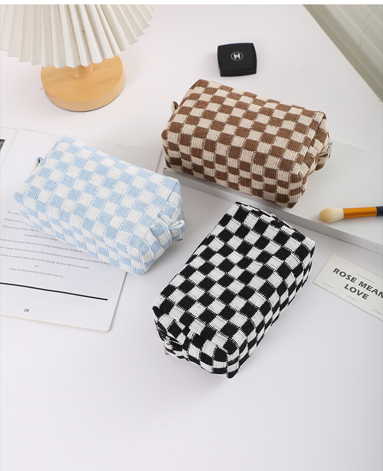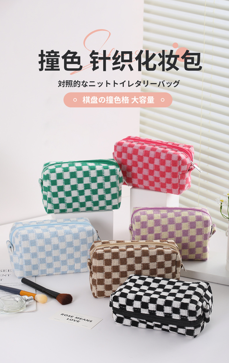 재고 도매 한국 in 바둑판 화장품 가방 대용량 니트 보관 가방 휴대용 여행 가방