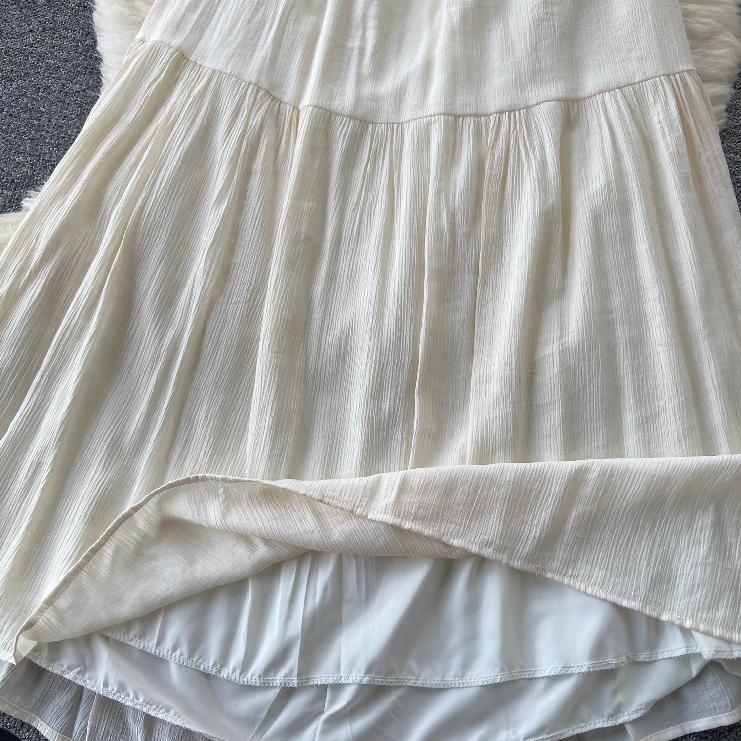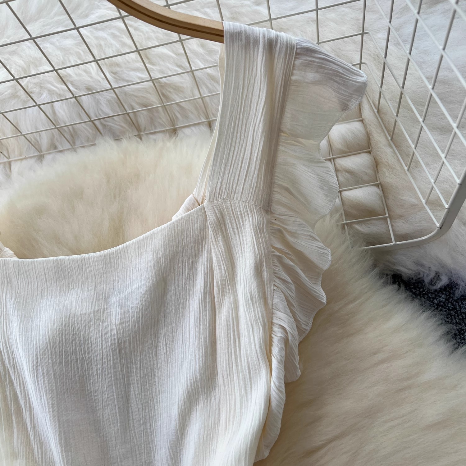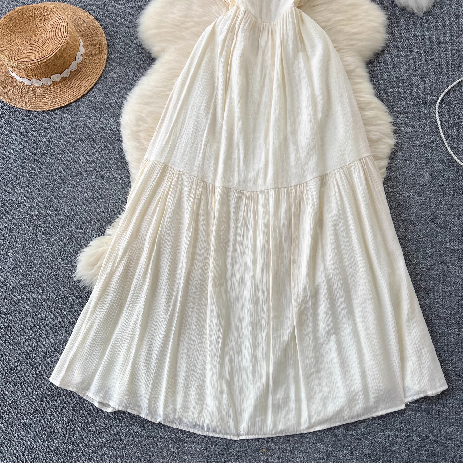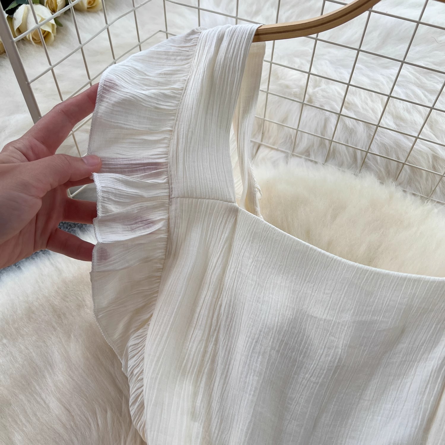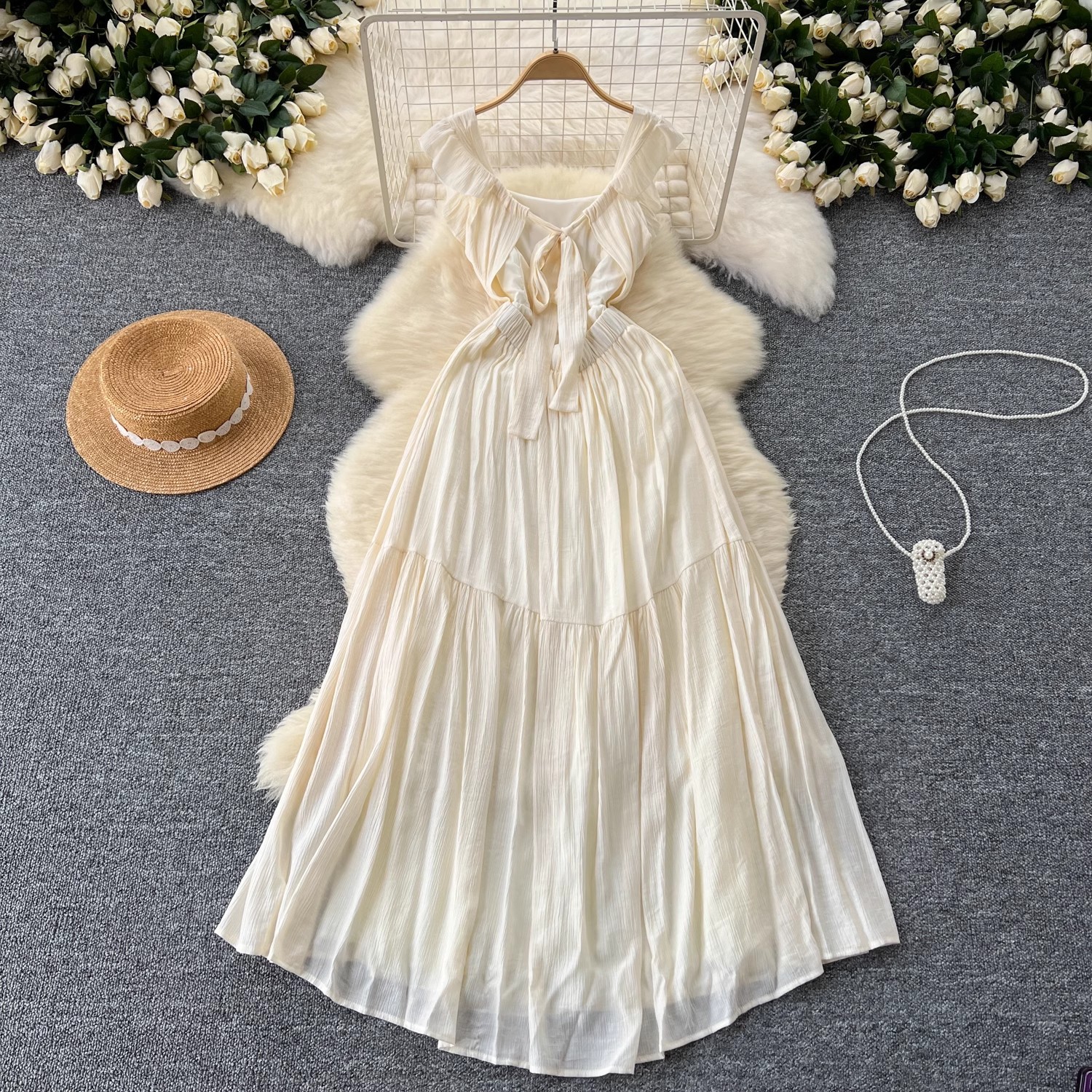 유럽과 미국의 슈퍼 페어리 휴가 원피스 여성 여름 프랑스 달콤한 작은 비행 슬리브 스트랩 높은 허리 대형 스윙 쉬폰 긴 원피스