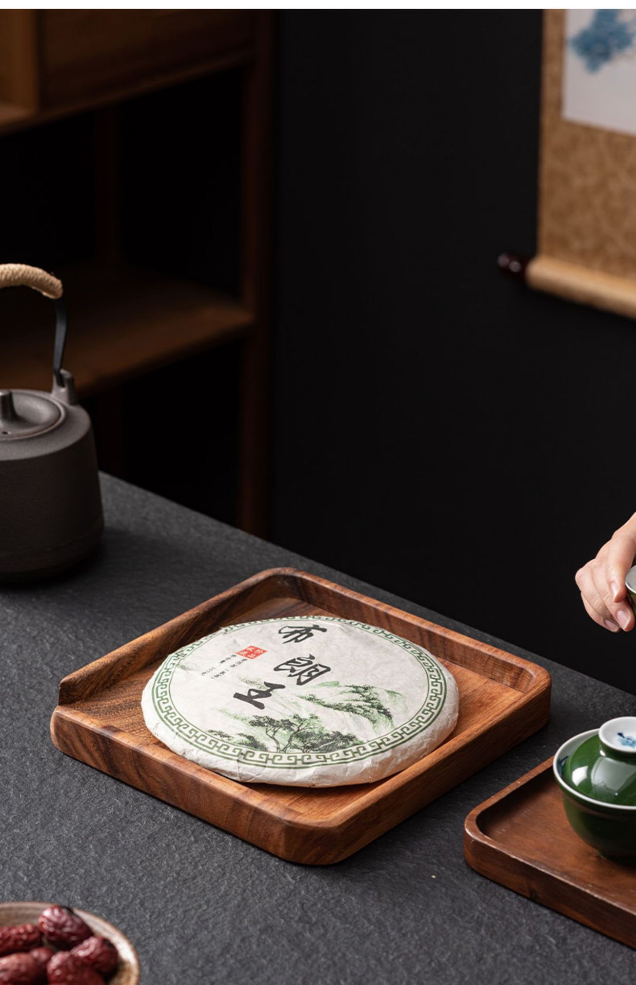 나무 차 쟁반 통나무 광장 둥근 모양 광장 과일 쟁반 북유럽 스타일 상쾌한 쟁반 고급 고급 작은 쟁반 차 감사 쟁반