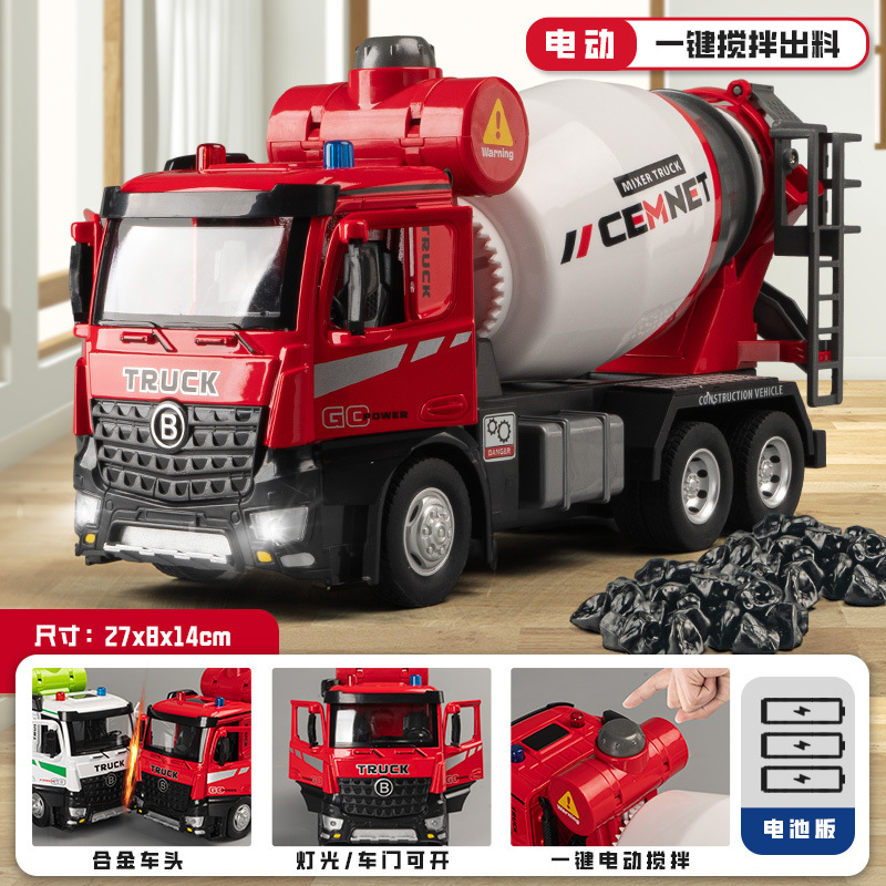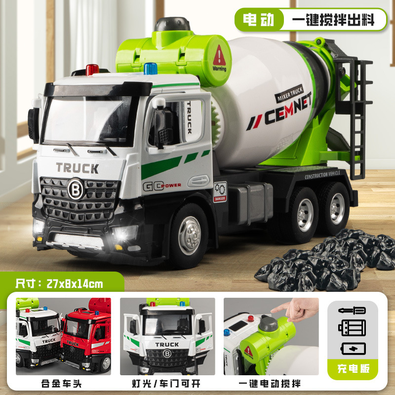 어린이 풀백 엔지니어링 자동차 장난감 소리와 가벼운 시뮬레이션 합금 전기 믹서 소년 합금 자동차 모델스토어 가기