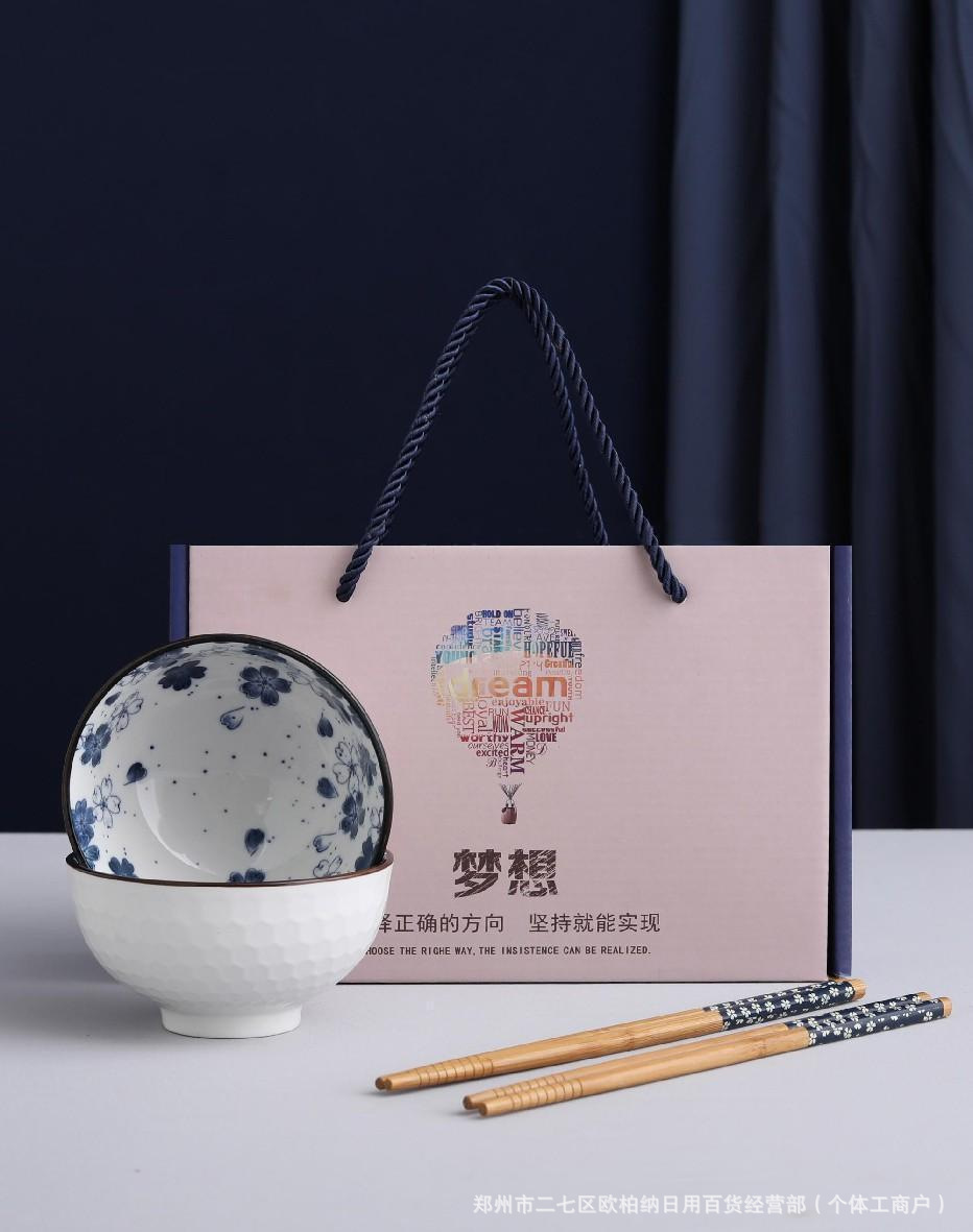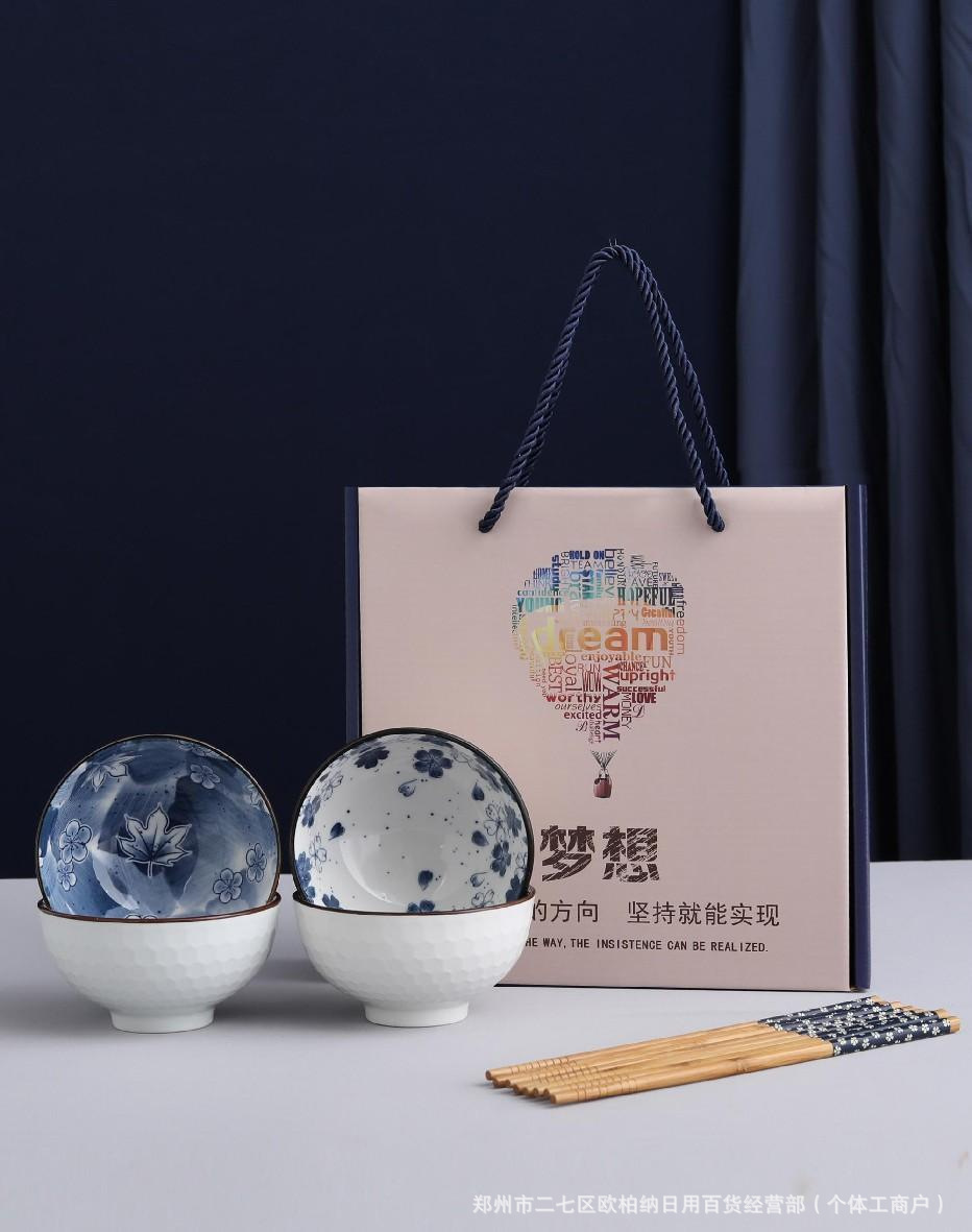 • 파란색으로 칠해진 그릇 4개와 젓가락(24세트/상자)