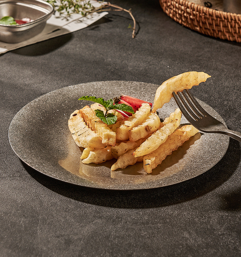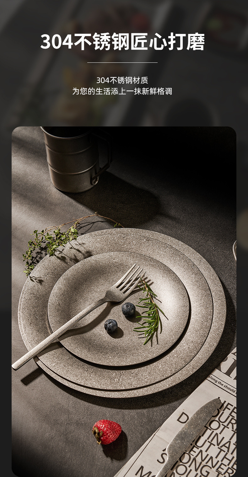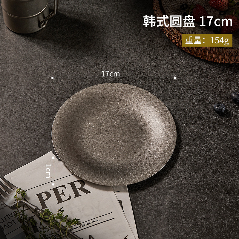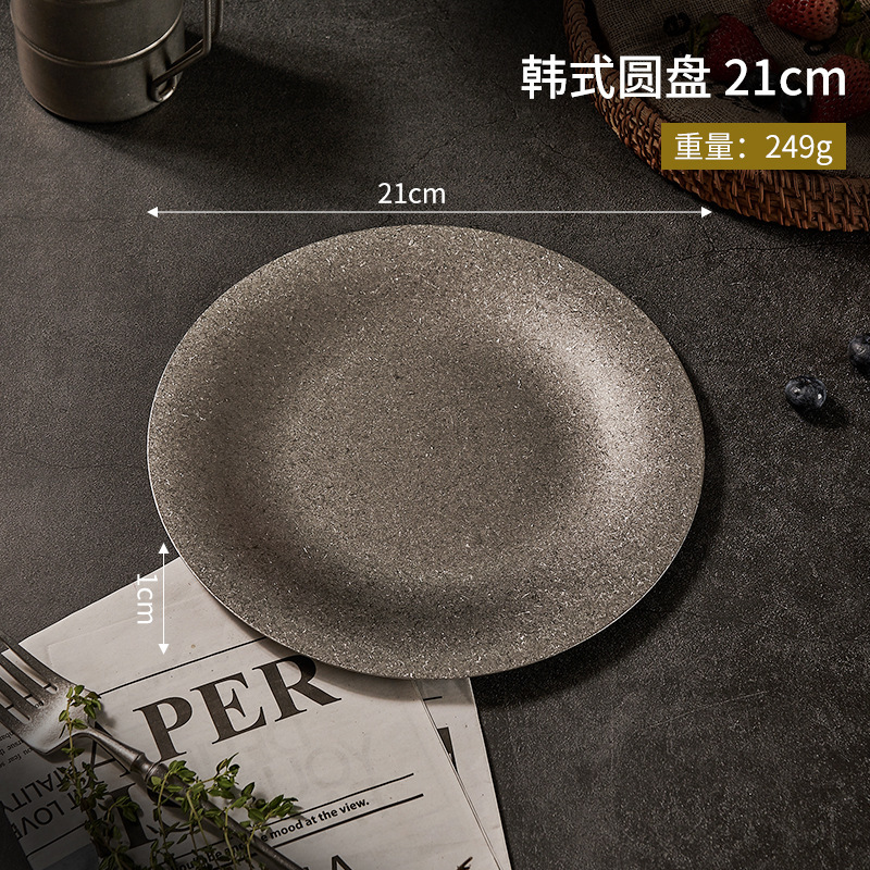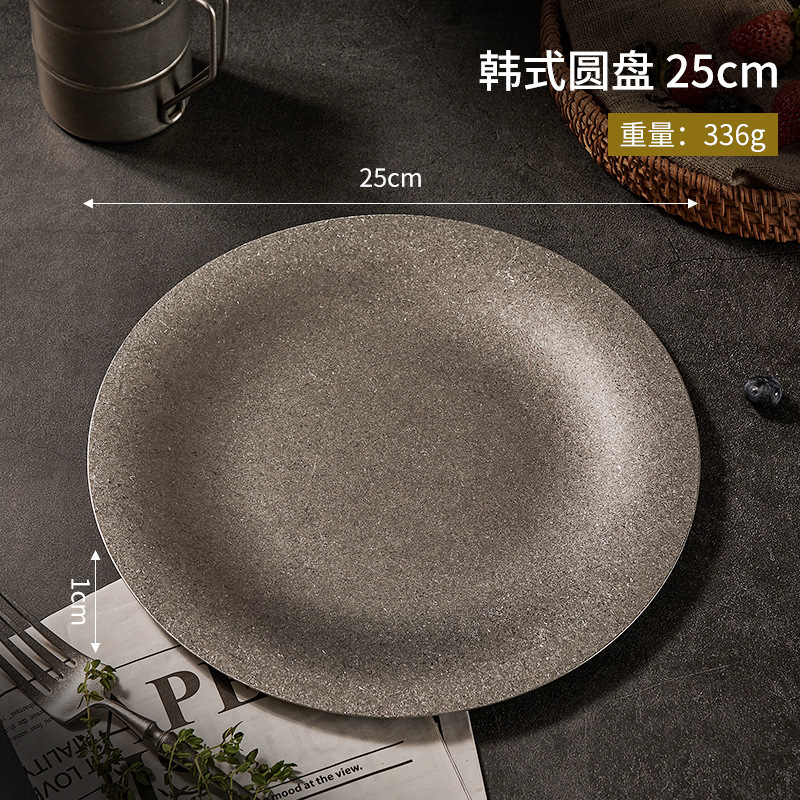 304 한국식 스테인레스 스틸 플레이트 바베큐 라운드 간단한 뷔페 플레이트 금속 트레이 바베큐 과일 디저트 플레이트