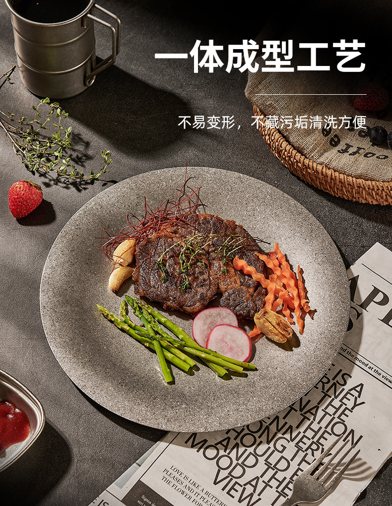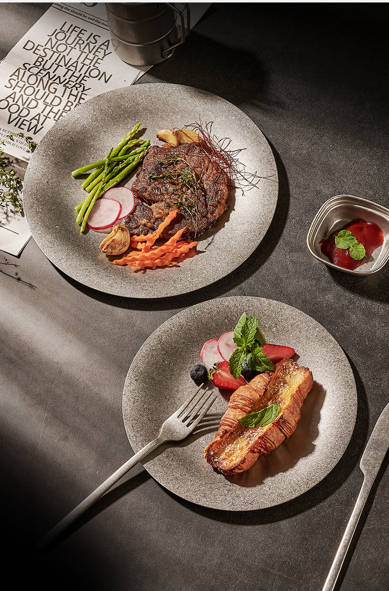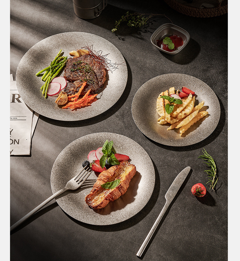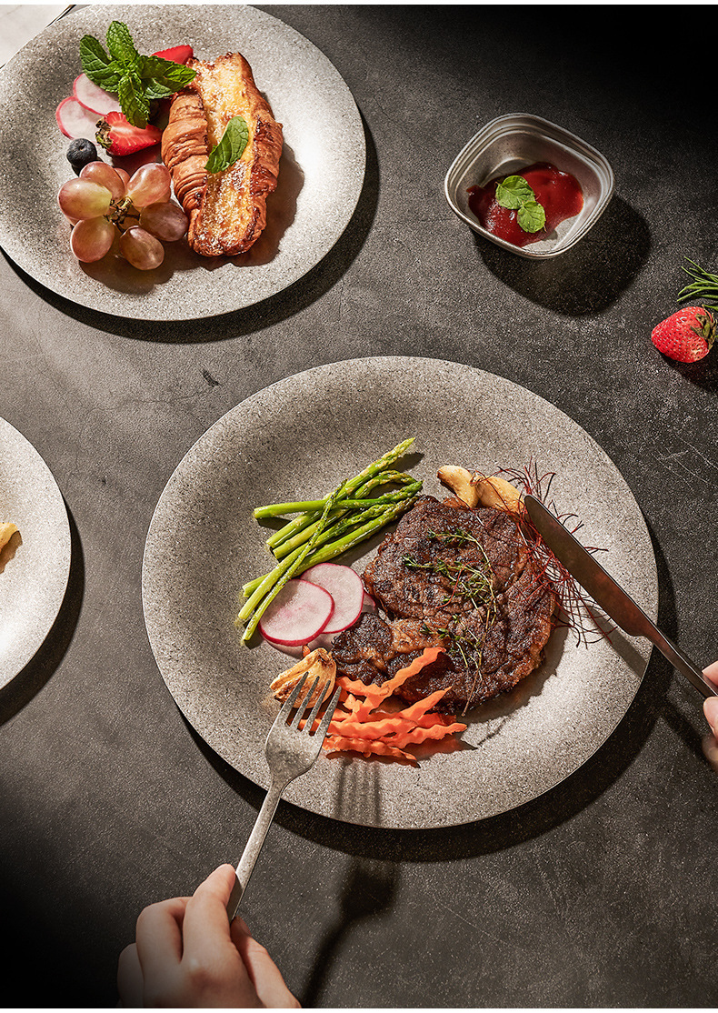 304 한국식 스테인레스 스틸 플레이트 바베큐 라운드 간단한 뷔페 플레이트 금속 트레이 바베큐 과일 디저트 플레이트