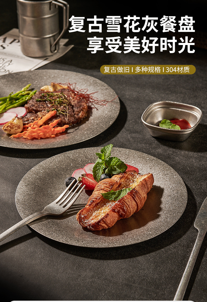 304 한국식 스테인레스 스틸 플레이트 바베큐 라운드 간단한 뷔페 플레이트 금속 트레이 바베큐 과일 디저트 플레이트스토어 가기