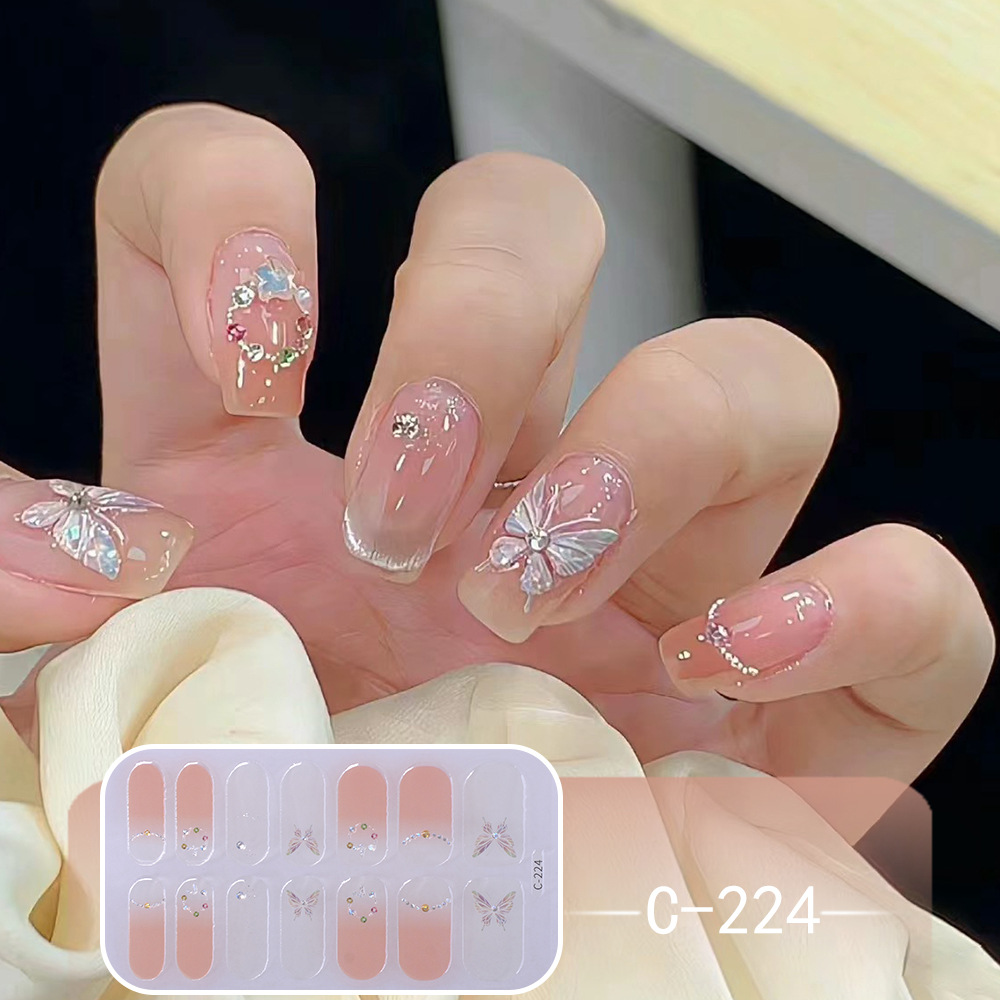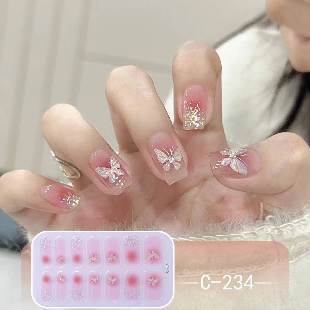 슈퍼 요정 나비 네일 아트 스티커 완성 된 블러시 네일 스티커 이동식 네일 아트 스티커