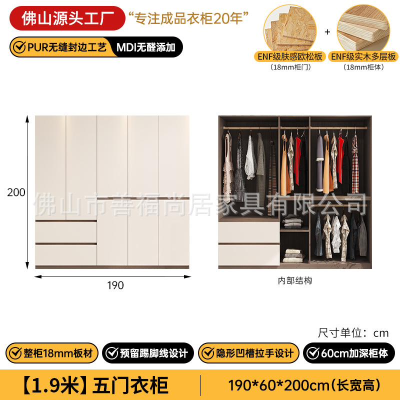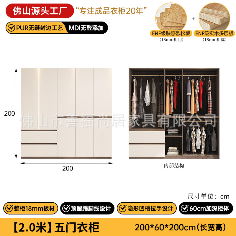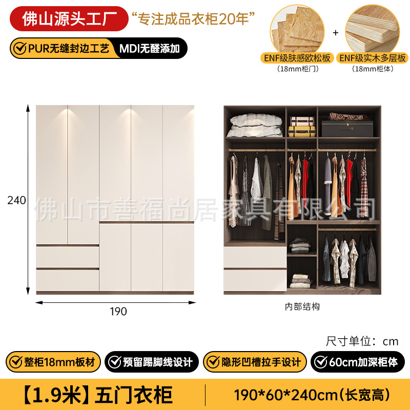 심플한 분할형 옷장, 원목 다층 보드 수납장, 가정용 침실용 손잡이 없는 완제품 조립식 옷장