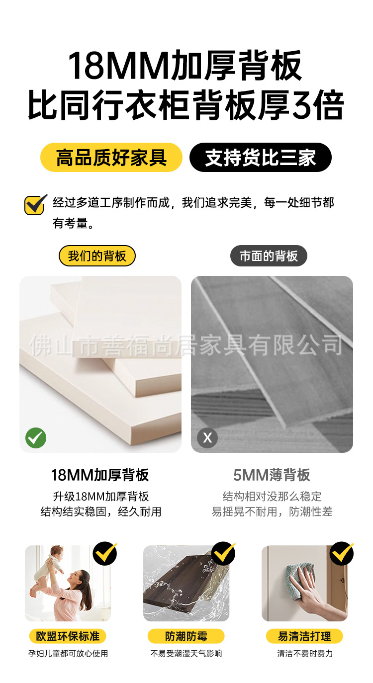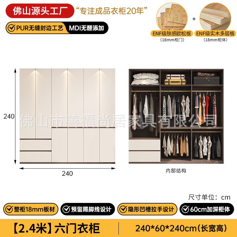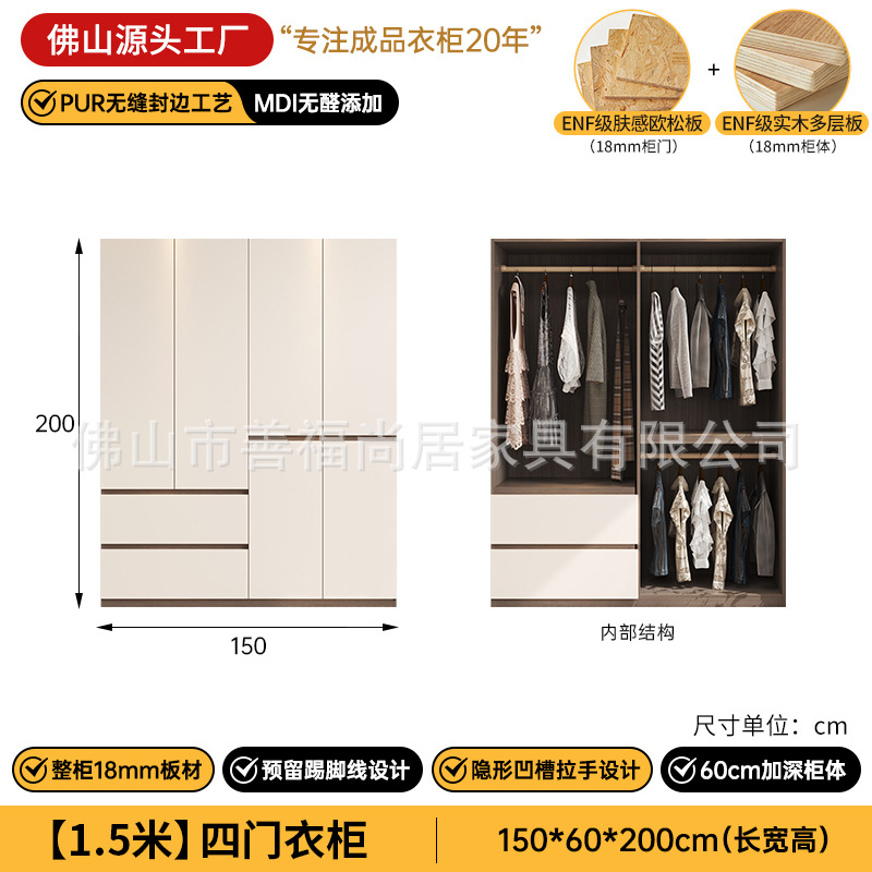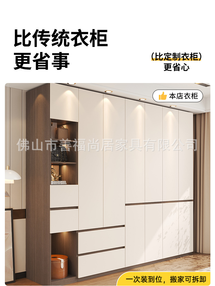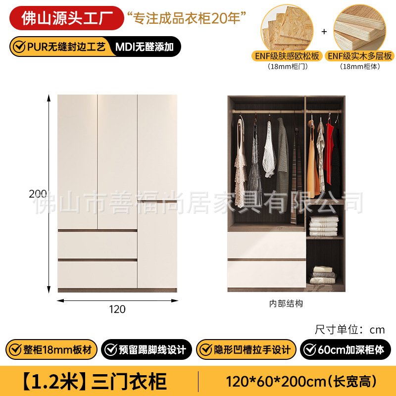심플한 분할형 옷장, 원목 다층 보드 수납장, 가정용 침실용 손잡이 없는 완제품 조립식 옷장스토어 가기