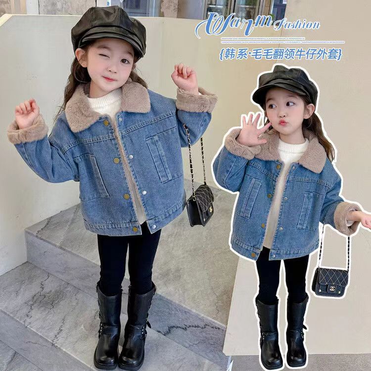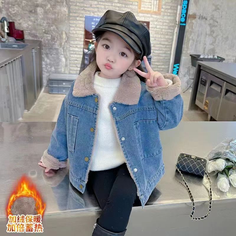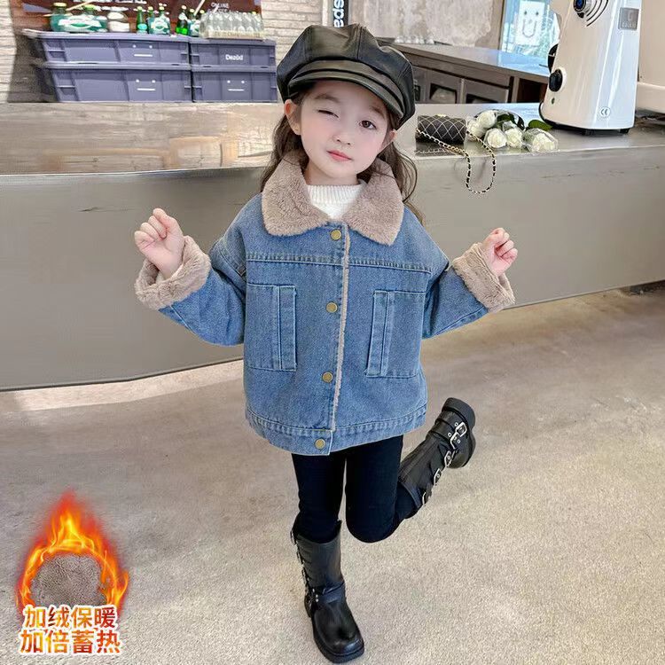 소녀 가을 겨울 기모 데님 코트 따뜻한 새 어린이 가을 코트 두꺼운 서양식 아기 소녀 겨울 코트 트렌디스토어 가기