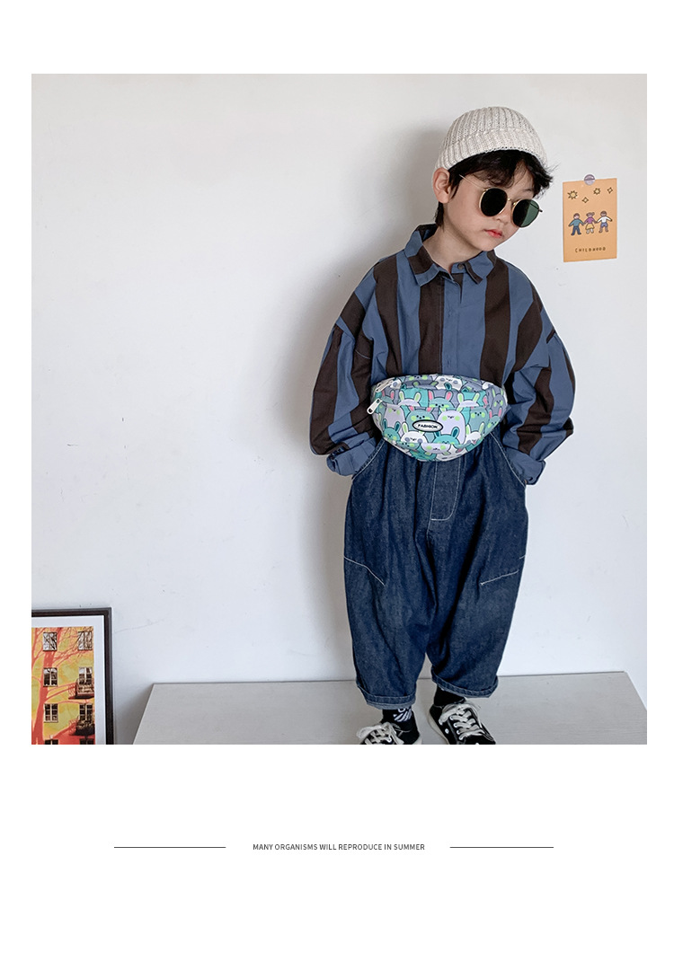 한국식 어린이 허리 가방 유행 아기 귀여운 인쇄 크로스 바디 가슴 가방 소년 캔버스 가방 소녀 동전 지갑