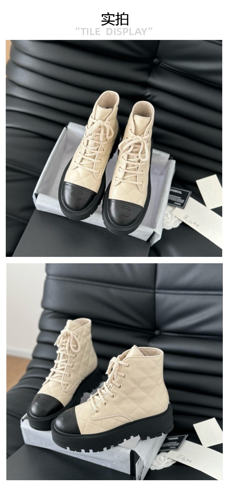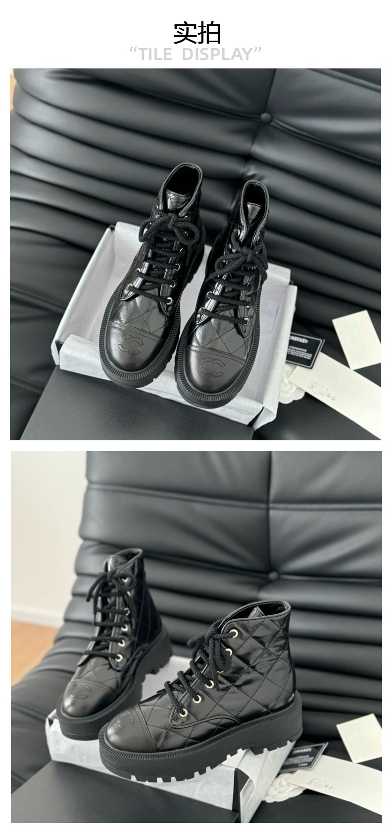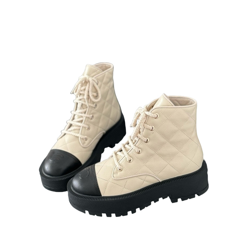Xiaoxiang 향기로운 다이아몬드 패턴 거친 뒤꿈치 정품 가죽 발목 부츠 여성의 2024 가을 및 겨울 새로운 라운드 발가락 레이스 업 패션 Baita Martin 부츠스토어 가기