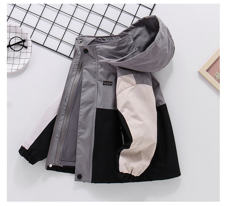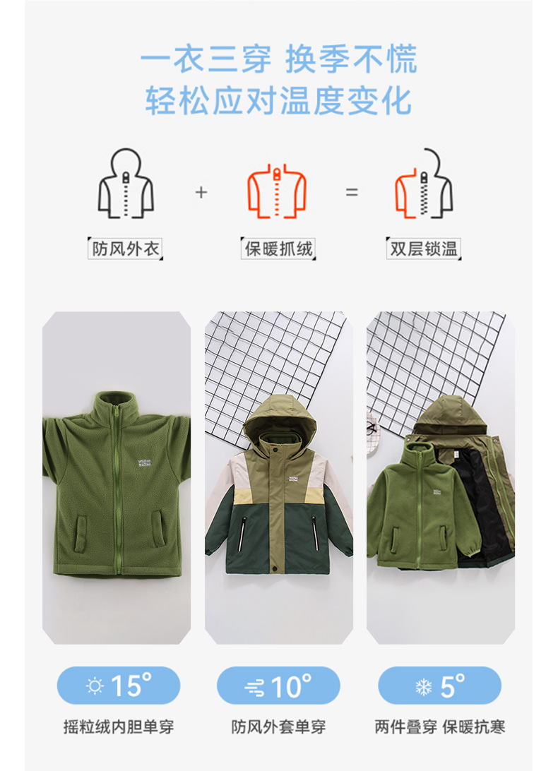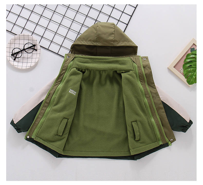 가을과 겨울 소년의 러시 옷 3 대 1 분리 가능한 방풍 두꺼운 따뜻한 중대형 어린이 캐주얼 후드 재킷