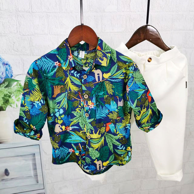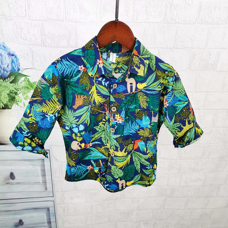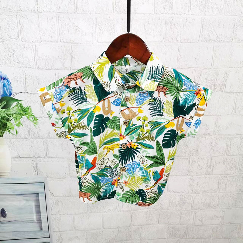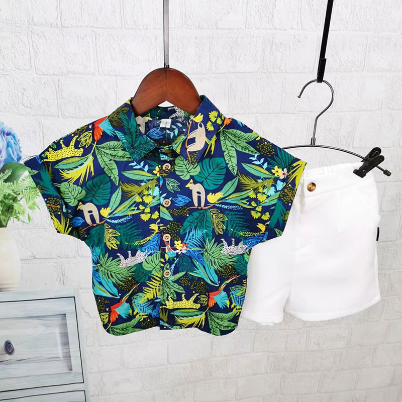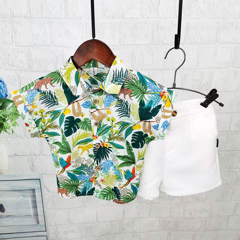 소년 여름 반팔 셔츠 세트 하와이 휴일 아기 세련된 투피스 어린이 해변 2024 새로운스토어 가기