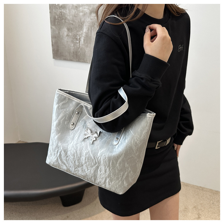 하이 엔드 토트 백 여자 2024 새로운 통근 핸드백 올 매치 유행 대용량 어깨 가방 트렌디
