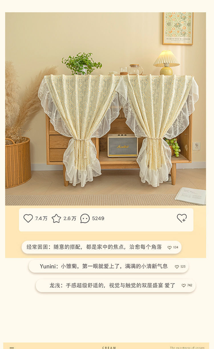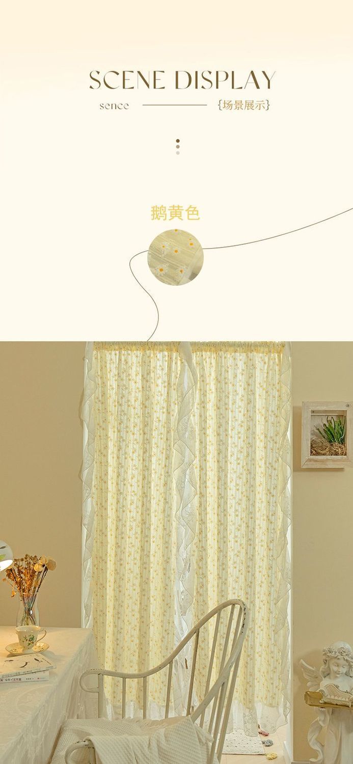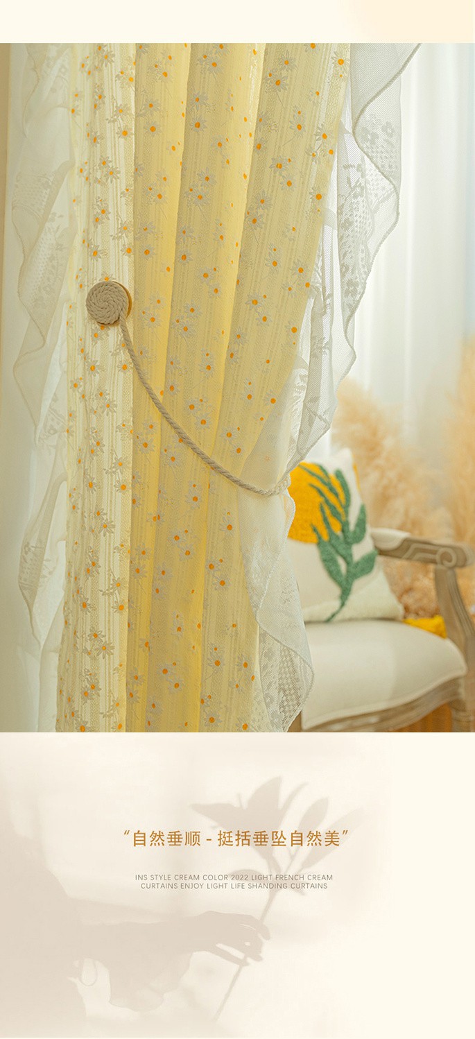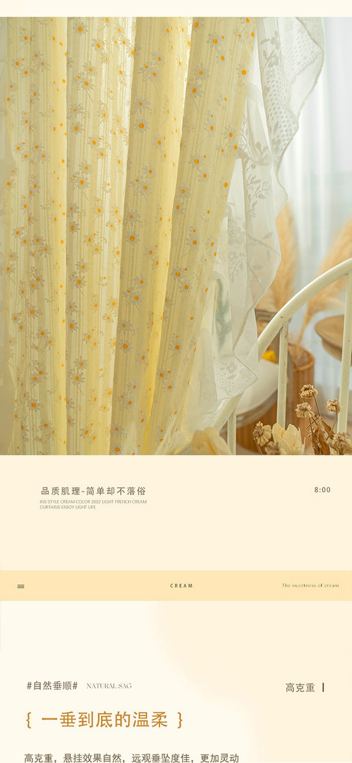 프랑스 크림 데이지 펀치없는 짧은 커튼 베이 창 커튼 목가적 인 도어 커튼 파티션 커튼 캐비닛 커튼 전체