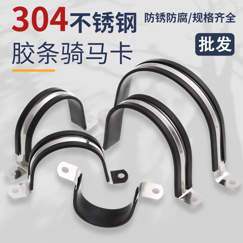 304 스테인레스 스틸 U 자형 강관 고무 스트립 승마 카드 클립 클램프 파이프 클립 고정 케이블 목 클램프 잠금스토어 가기
