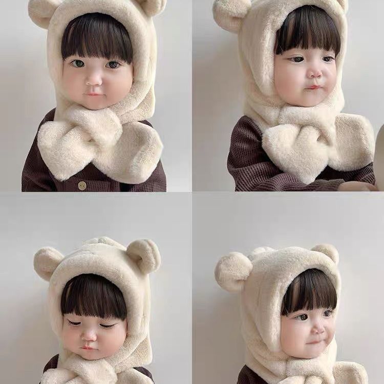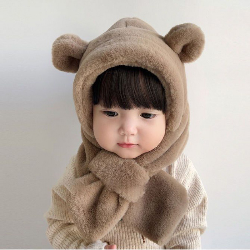 어린이 아기 모자 스카프 통합 아기 귀여운 가을과 겨울 아기 슈퍼 귀여운 방풍 겨울 두꺼운 따뜻한 귀 보호