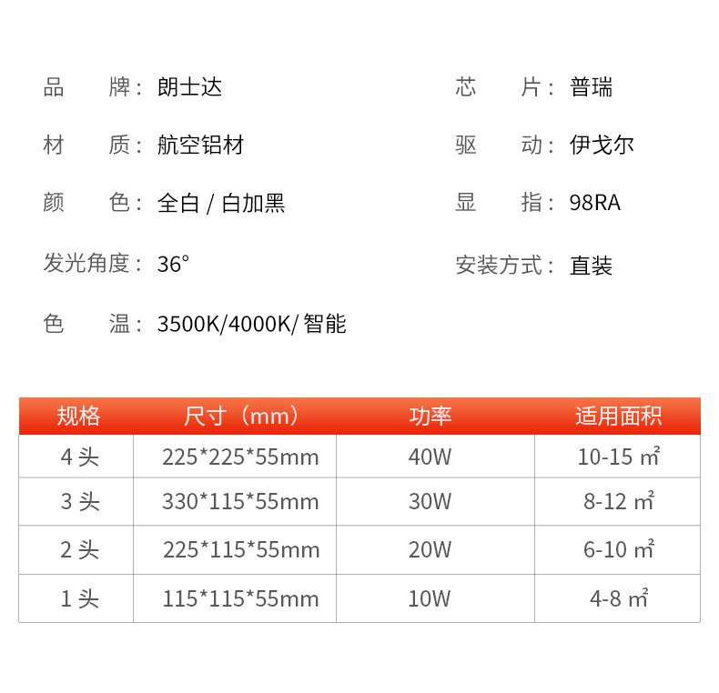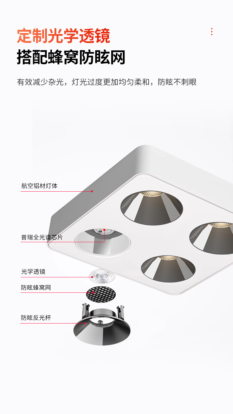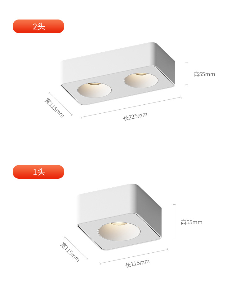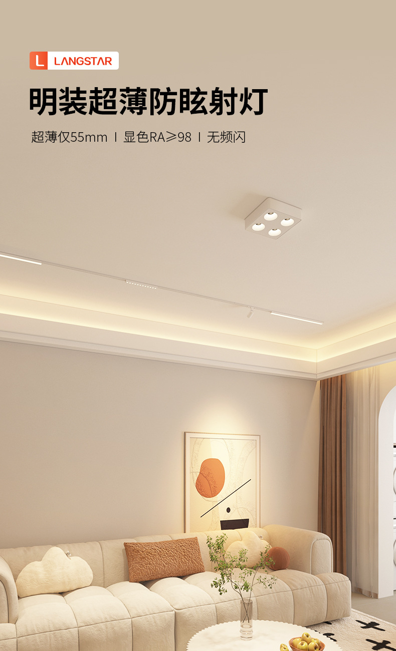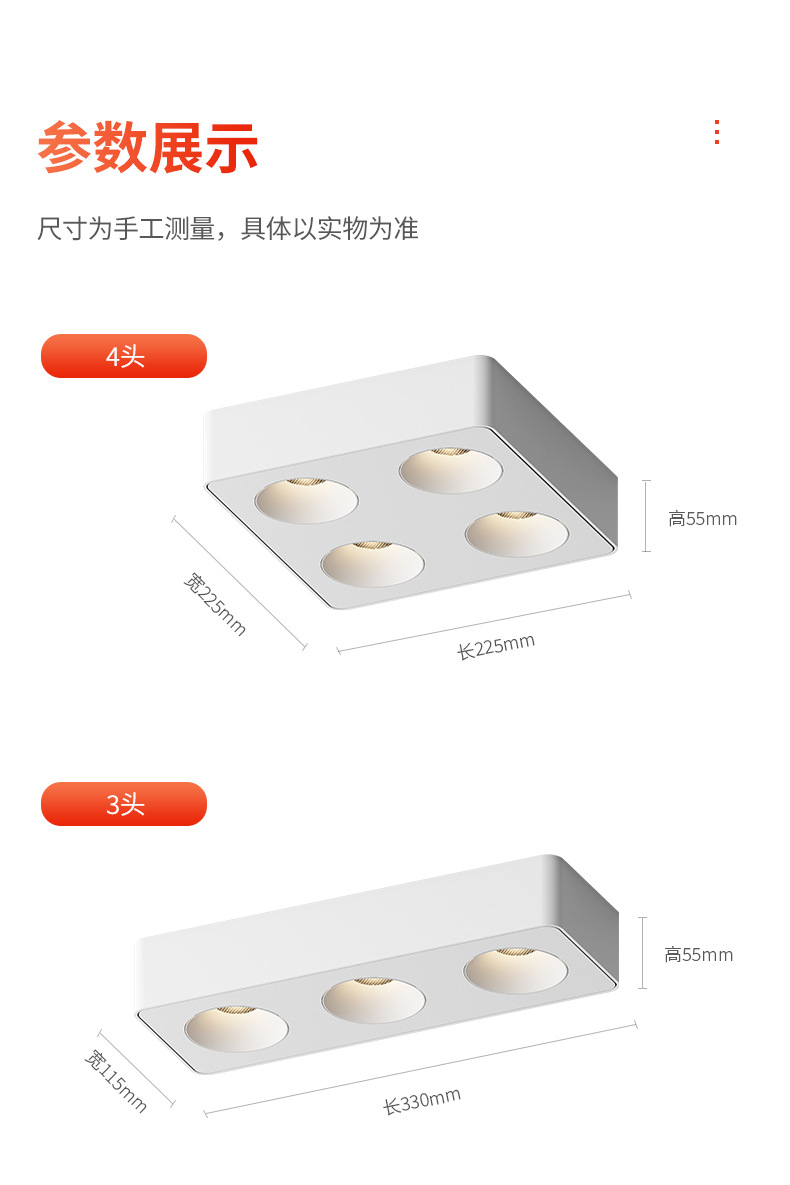 4 헤드 오픈 다운 라이트 초박형 지능형 스퀘어 더블 헤드 버킷 담낭 램프 메인 램프 거실 조명 천장 스포트라이트 눈부심