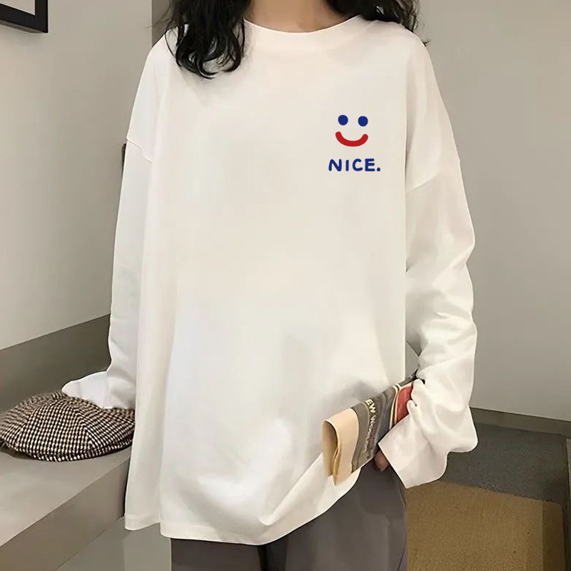 220G 간단한 이너 베이스 셔츠 여성의 가을 긴 소매면 어깨 티셔츠 남성 둥근 목 단색 연인 옷 도매스토어 가기