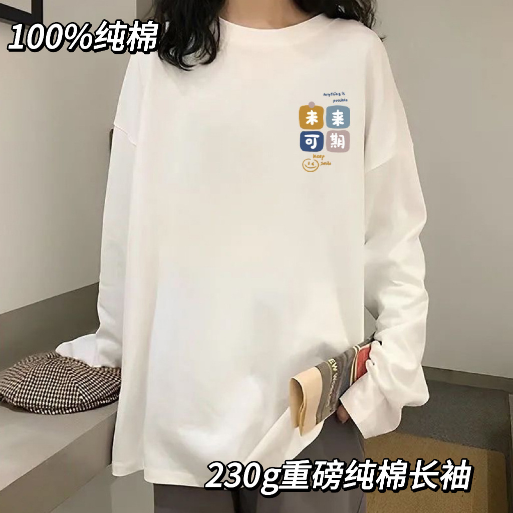 220G 간단한 이너 베이스 셔츠 여성의 가을 긴 소매면 어깨 티셔츠 남성 둥근 목 단색 연인 옷 도매