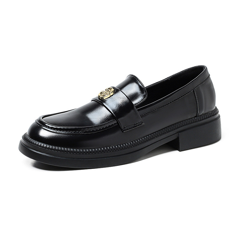 동백 꽃 사랑 ~ 작은 금화 버클 두꺼운 바닥 로퍼 여성의 2024 년 여름 가을 새로운 영국 스타일 싱글 신발 작은 가죽 신발