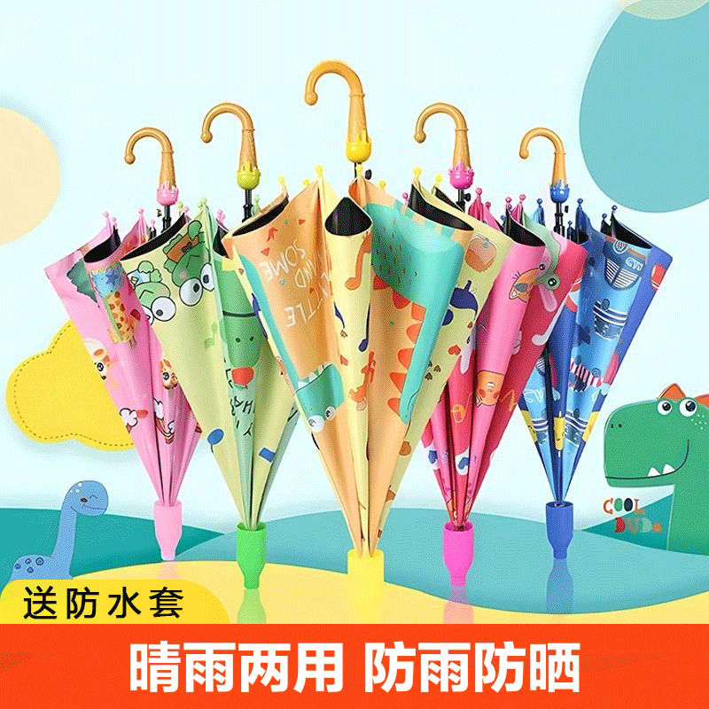 자동 만화 어린이 우산 도매 유치원 어린이 우산 자외선 차단 양산 겸용 우산 초등학교 긴 손잡이 우산