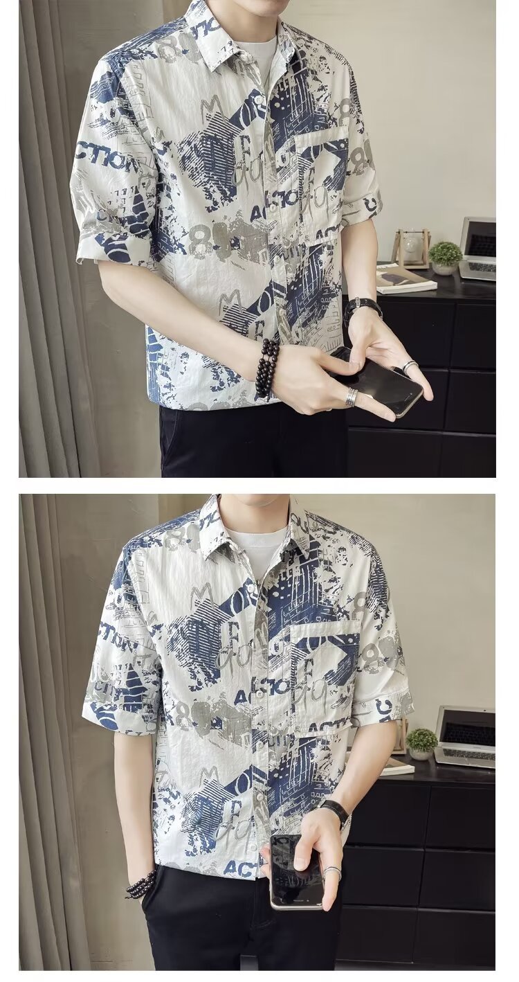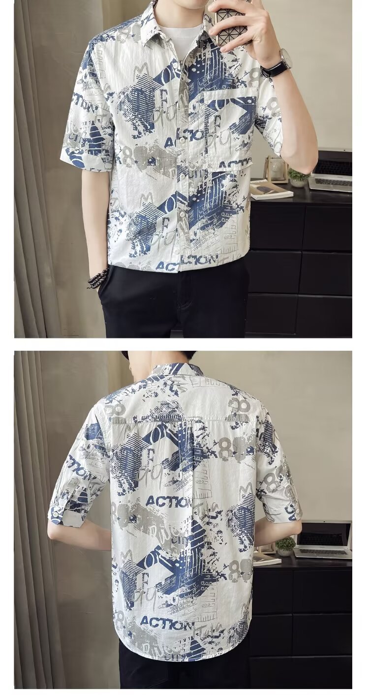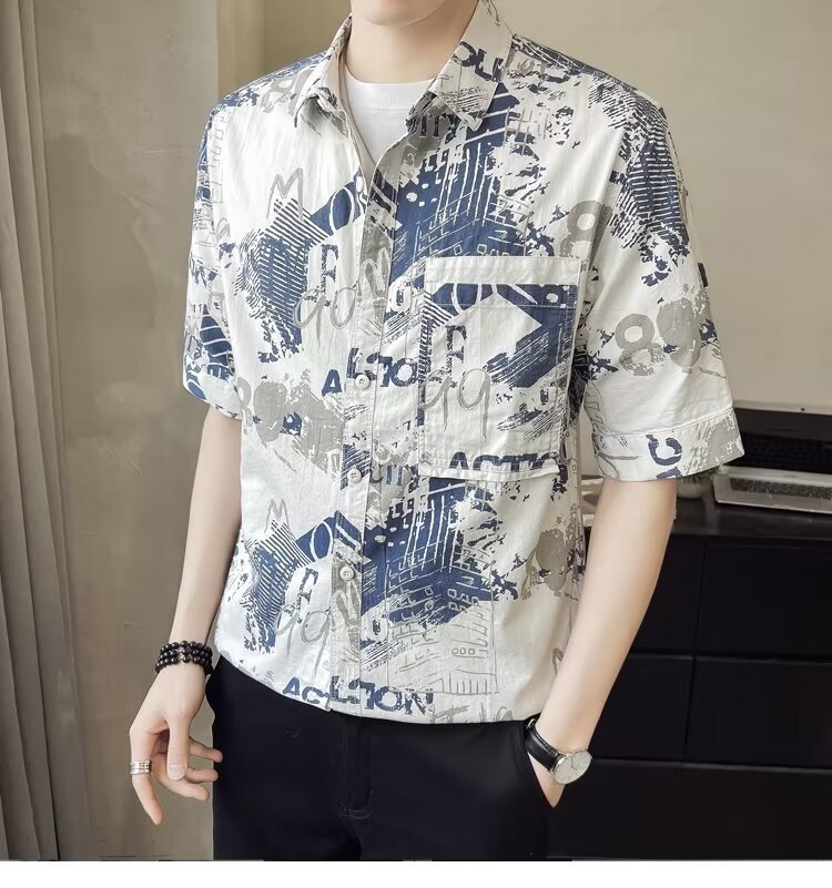여름 틈새 트렌디하고 잘 생긴 캐주얼 플라워 셔츠 남성용 반소매 셔츠 플러스 사이즈 남성용 반소매 셔츠스토어 가기