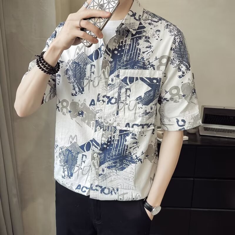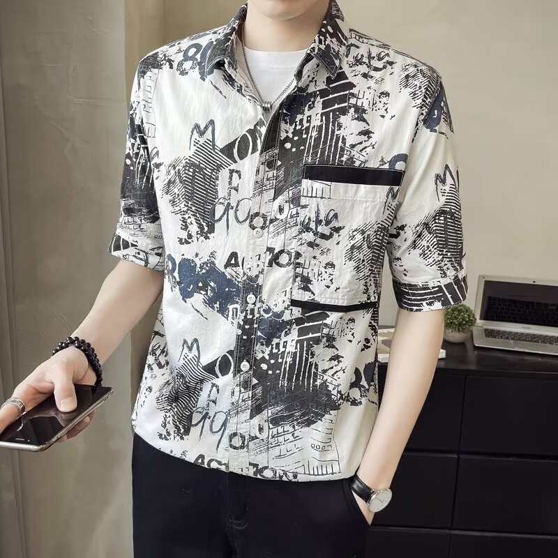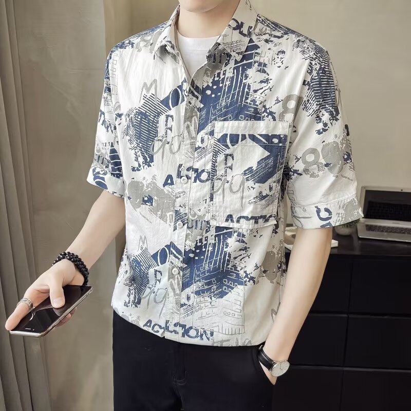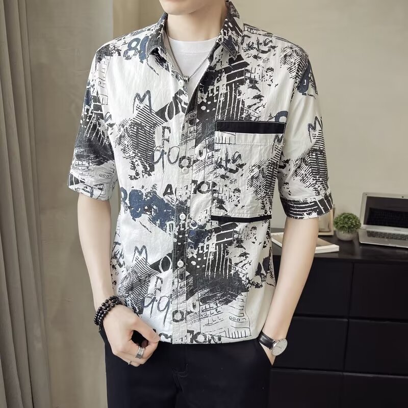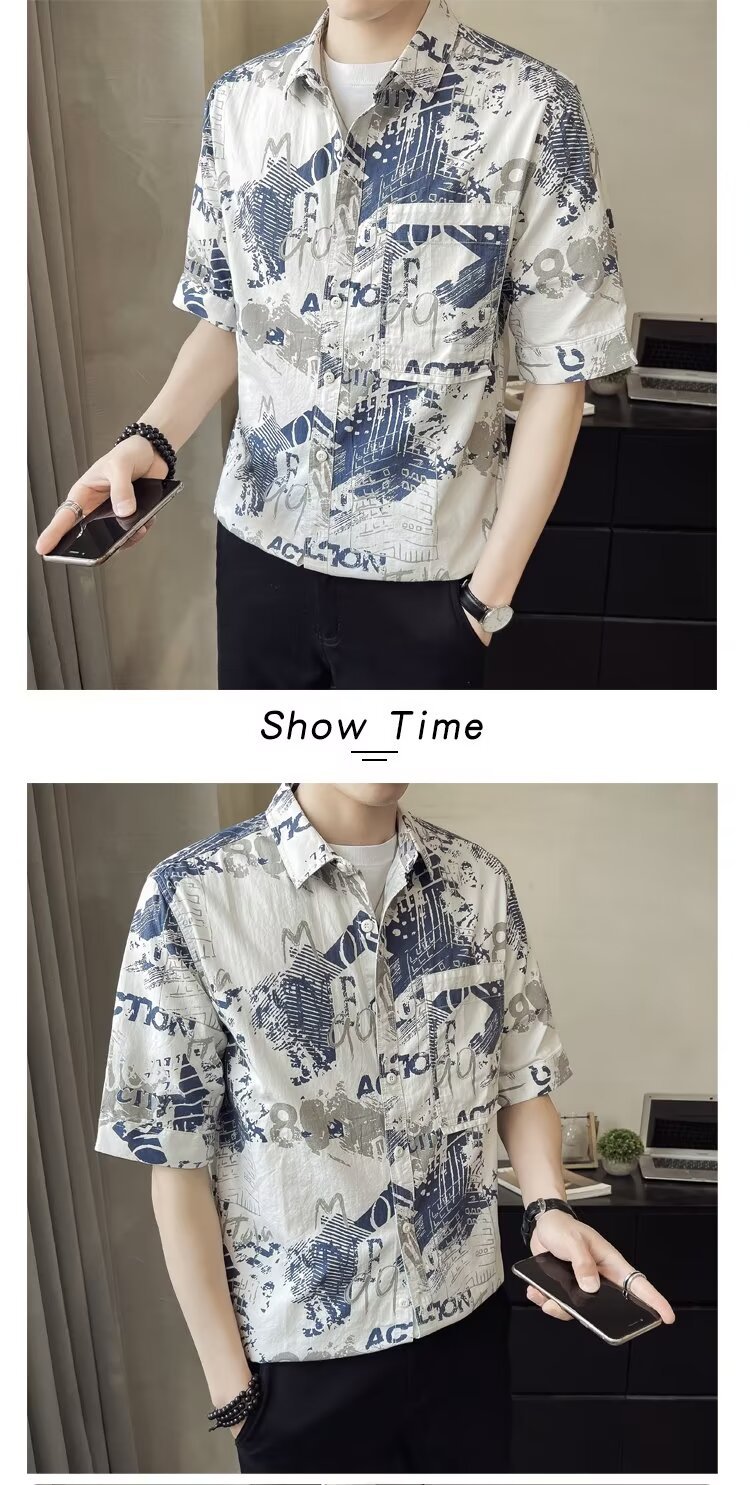 여름 틈새 트렌디하고 잘 생긴 캐주얼 플라워 셔츠 남성용 반소매 셔츠 플러스 사이즈 남성용 반소매 셔츠스토어 가기