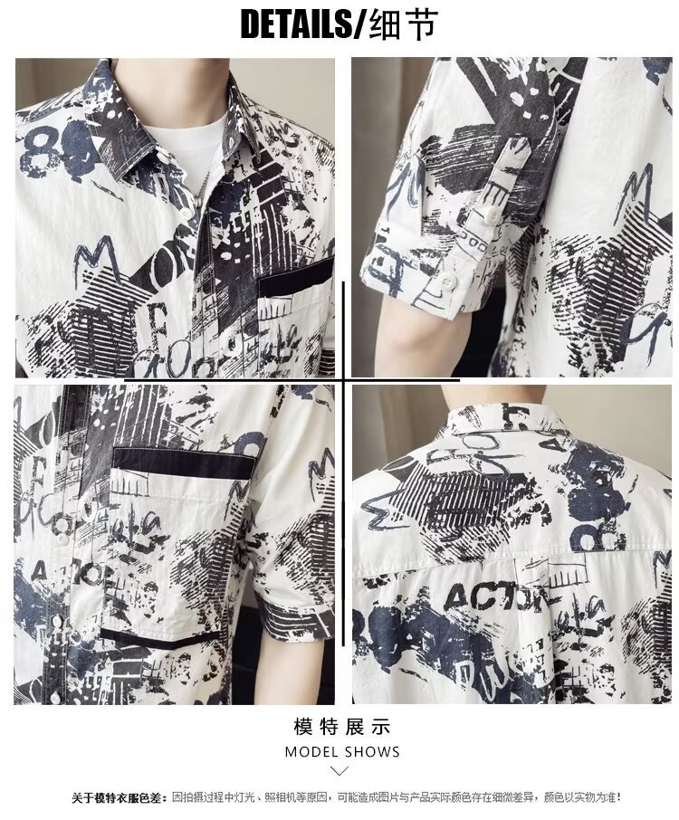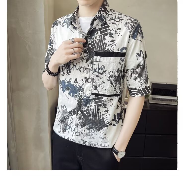 여름 틈새 트렌디하고 잘 생긴 캐주얼 플라워 셔츠 남성용 반소매 셔츠 플러스 사이즈 남성용 반소매 셔츠