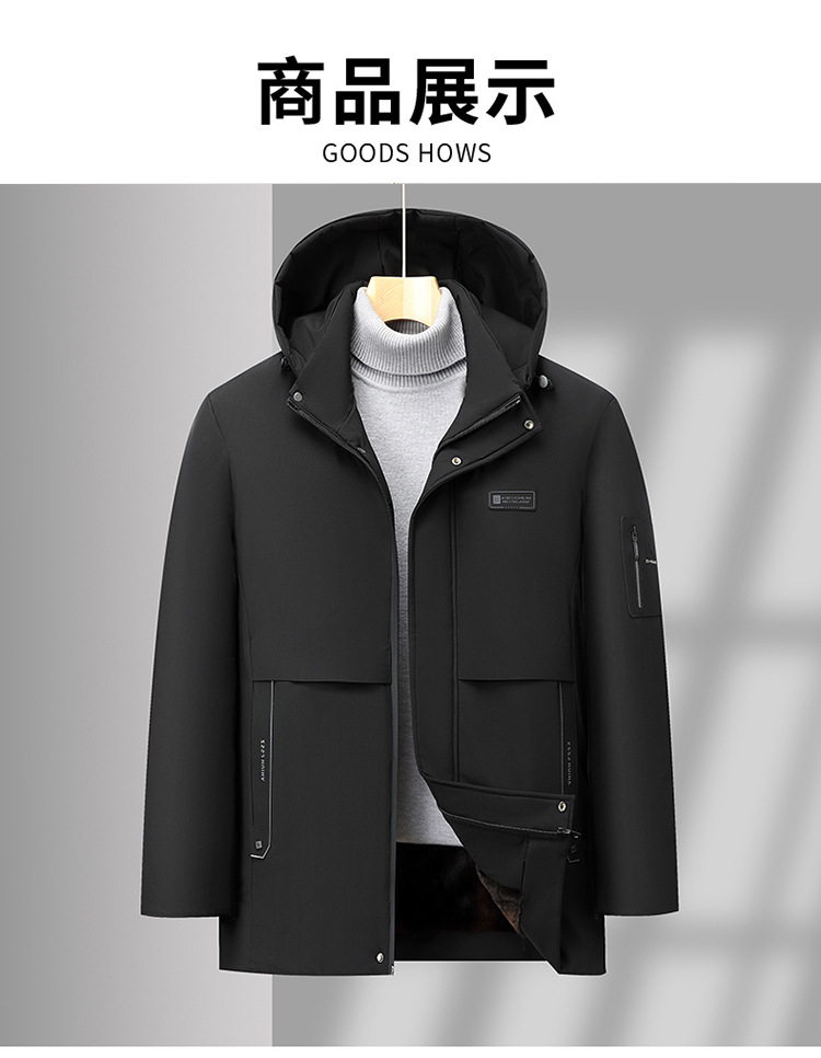 남자 겨울 이동식 모자 중간 길이의 따뜻한 면 패딩 코트 중년 및 노인 캐주얼 후드 누빔안감 코튼 패딩 코트스토어 가기