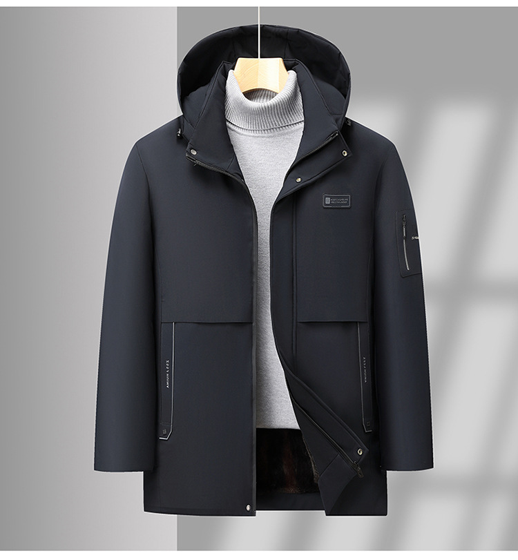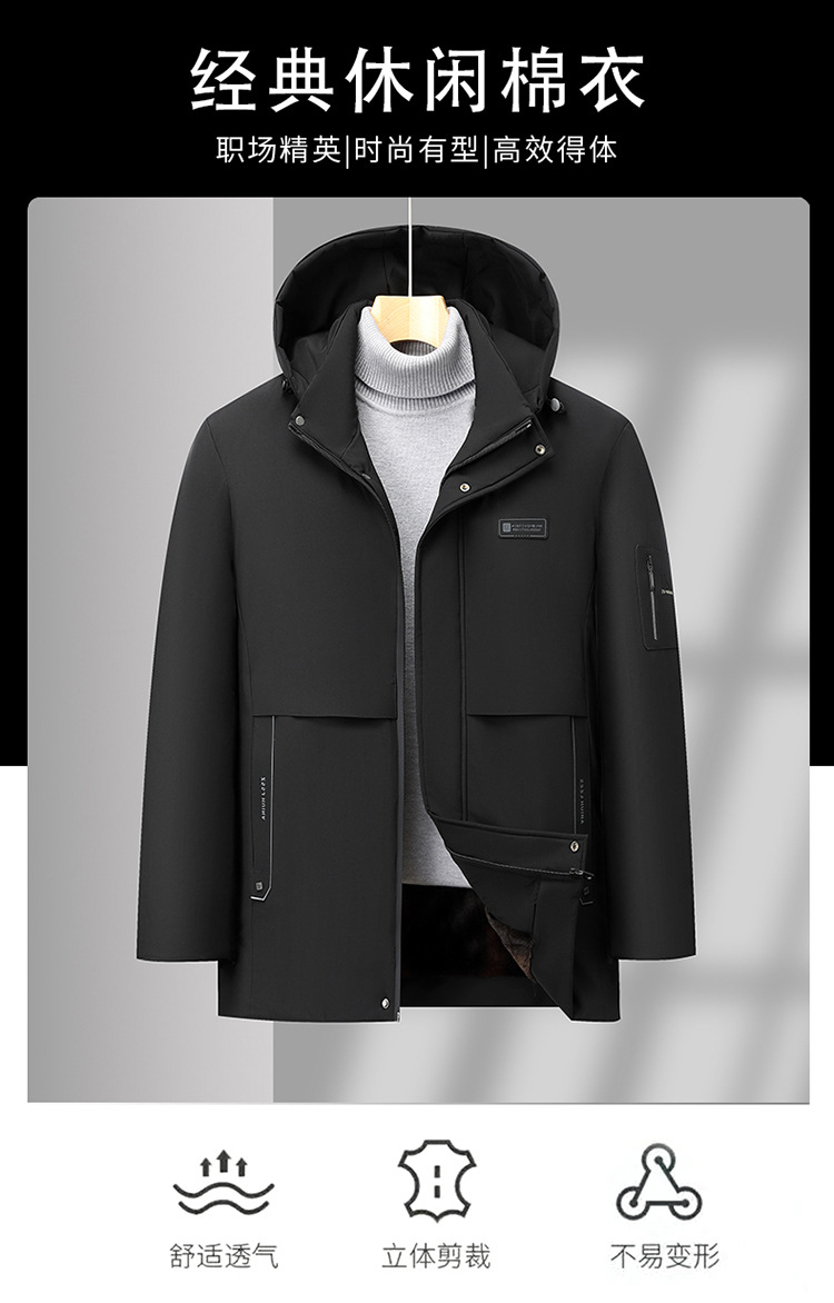 남자 겨울 이동식 모자 중간 길이의 따뜻한 면 패딩 코트 중년 및 노인 캐주얼 후드 누빔안감 코튼 패딩 코트