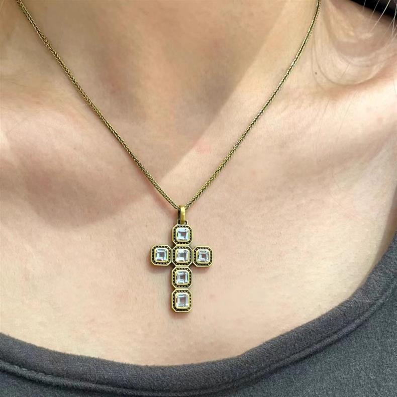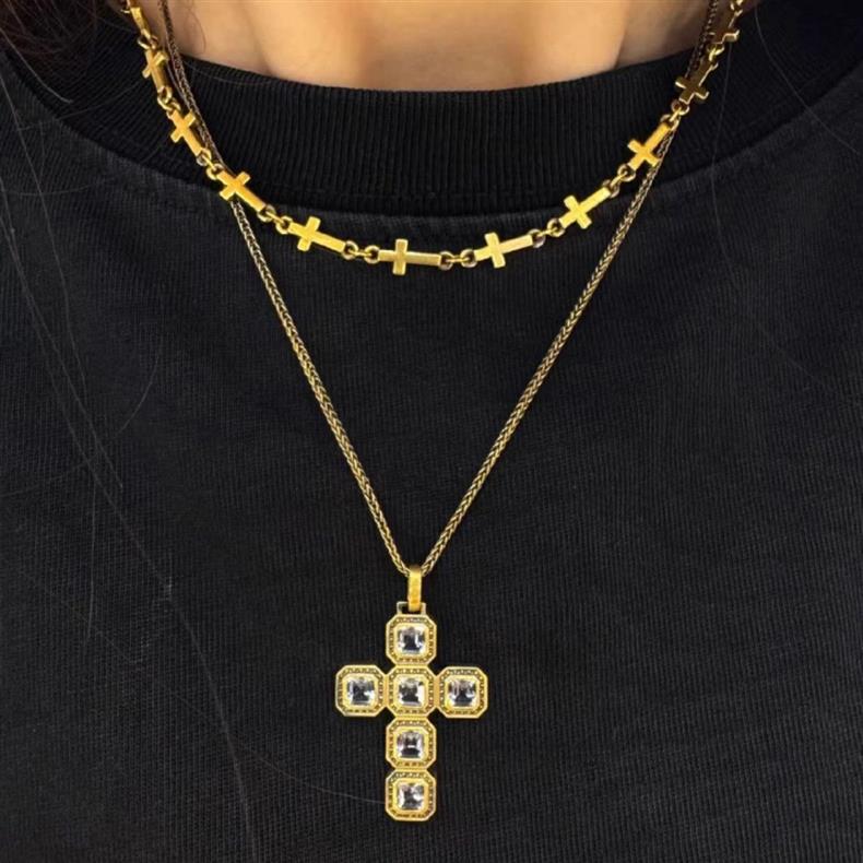 새로운 충격 크리스탈 복고풍 크로스 펜던트 골드 컬러 대기 간단한 크로스 목걸이 성격 스타일