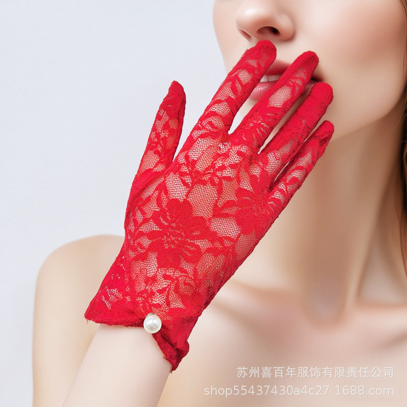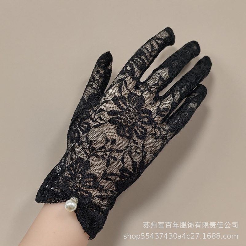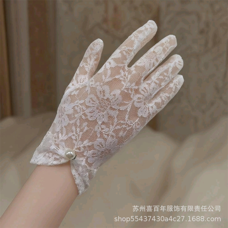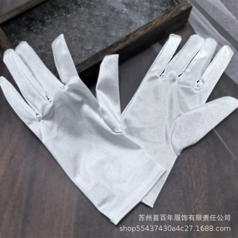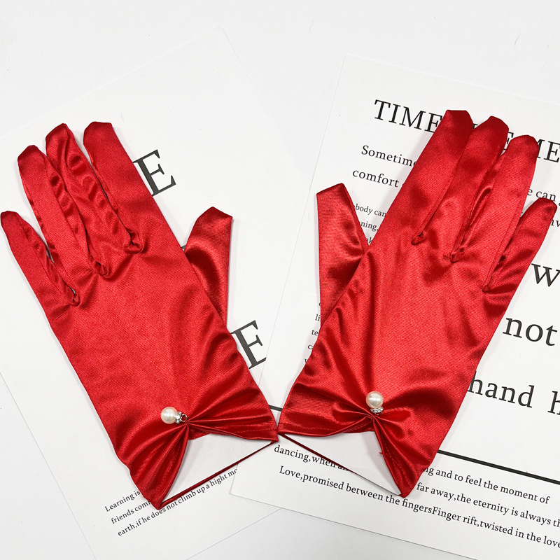 새로운 프랑스 햅번 스타일의 짧은 진주 새틴 신부 장갑, 맞춤형 흰색 장갑, 공주 스타일 사진 소품스토어 가기