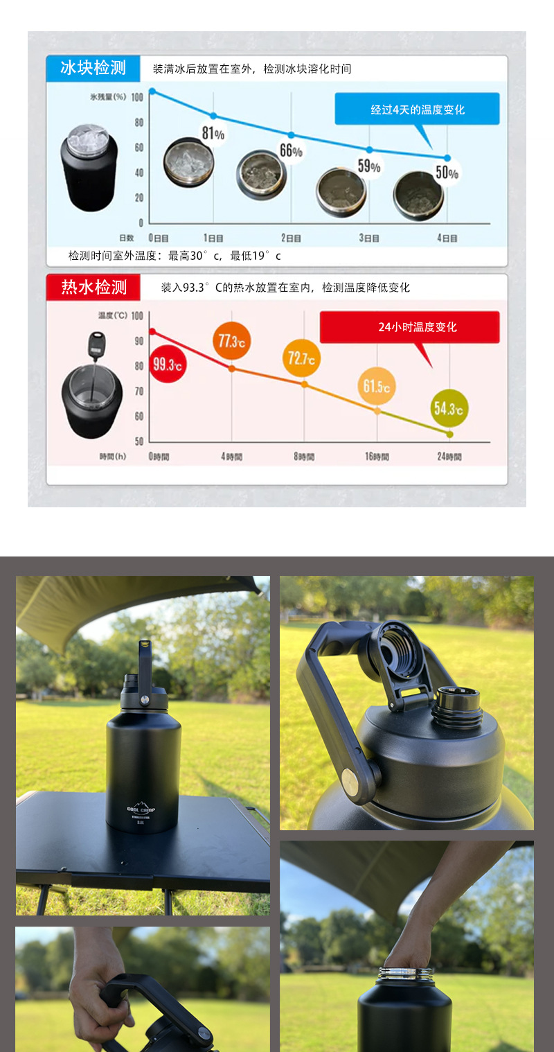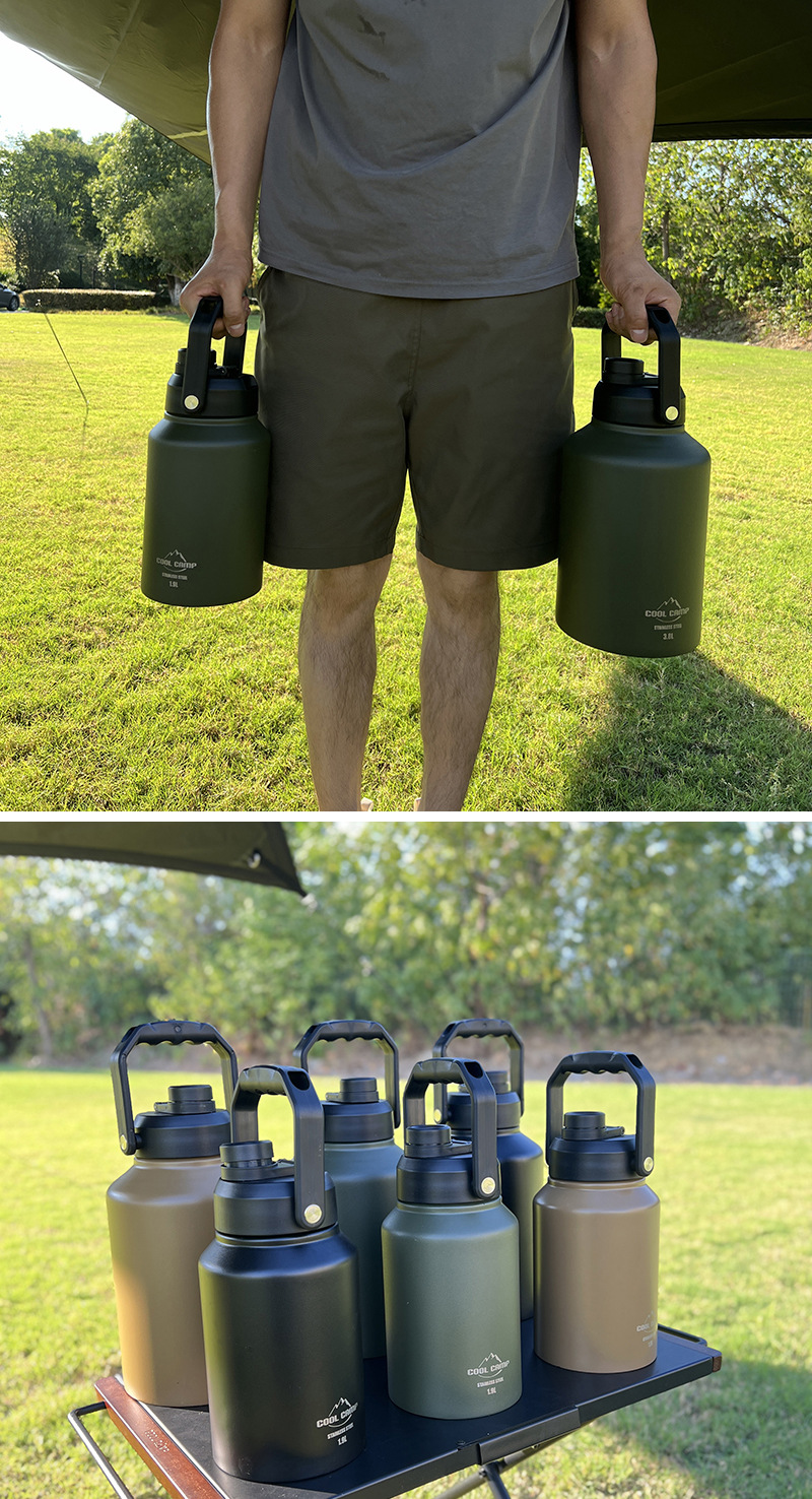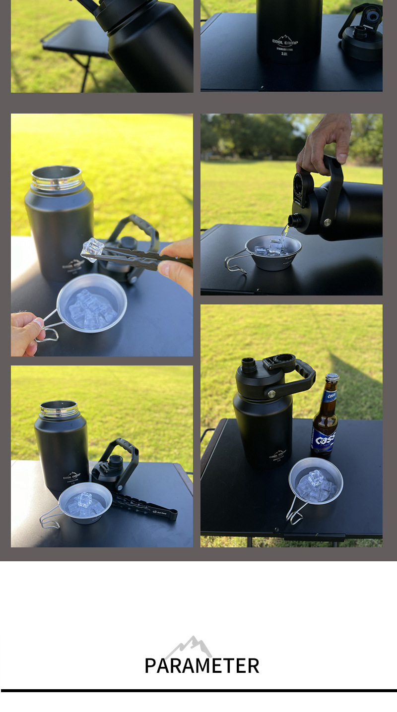Kule 야외 캠핑 대용량 아이스 버킷 304 스테인레스 스틸 더블 레이어 보온병 컵 휴대용 주전자 냉장고